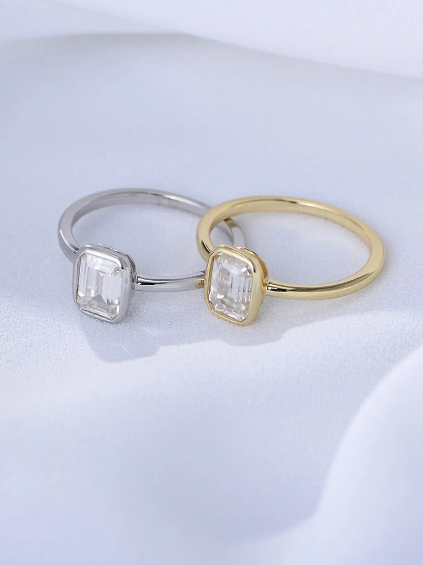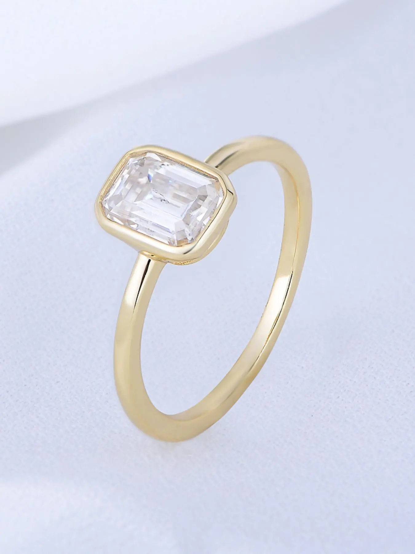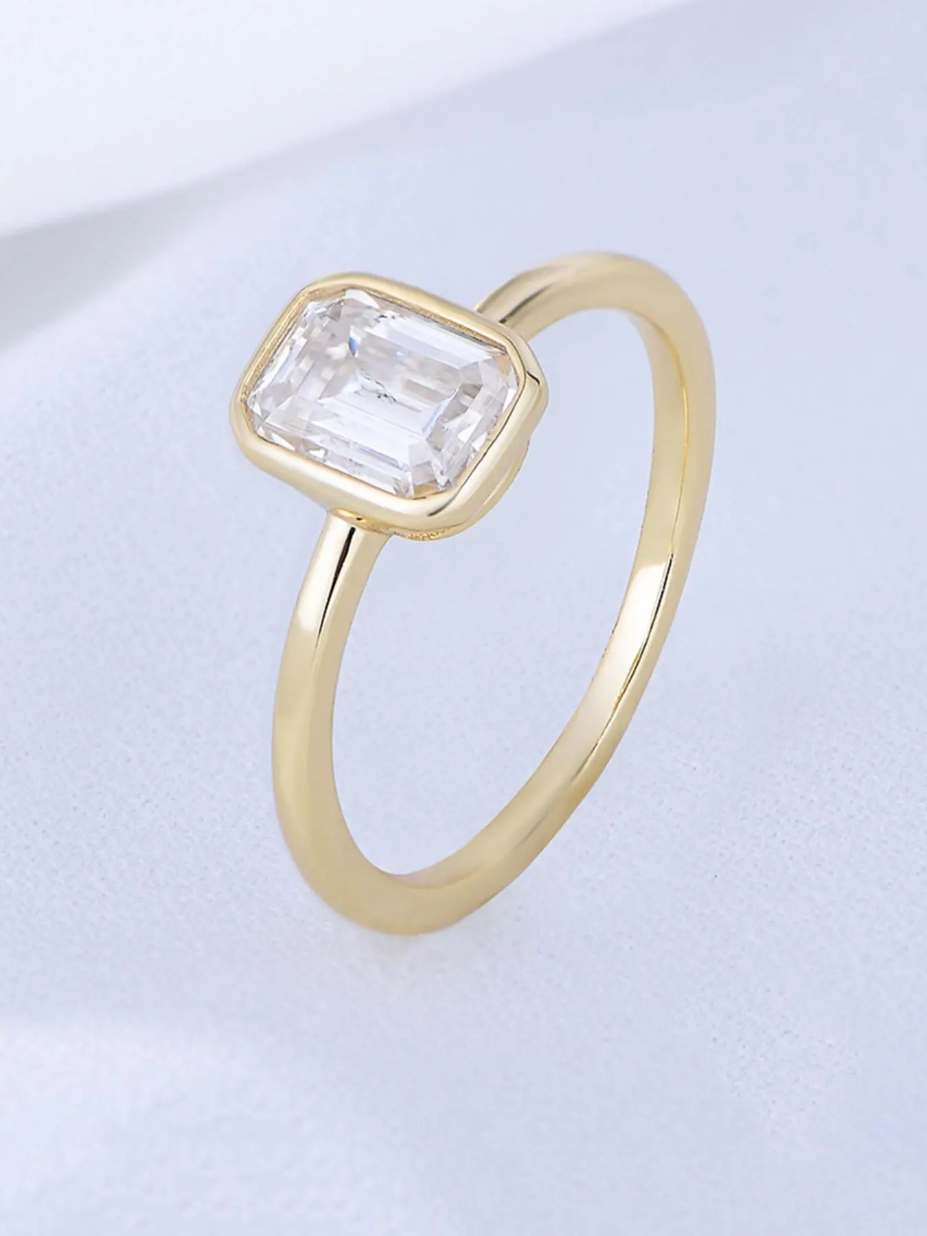 S925 Sterling Silver Rectangular Zircon Ring, Emerald Cut Solitaire Ring, Luxury Engagement Ring for Women, Trendy All-match & Exquisite Jewelry for Birthday Gift with Box