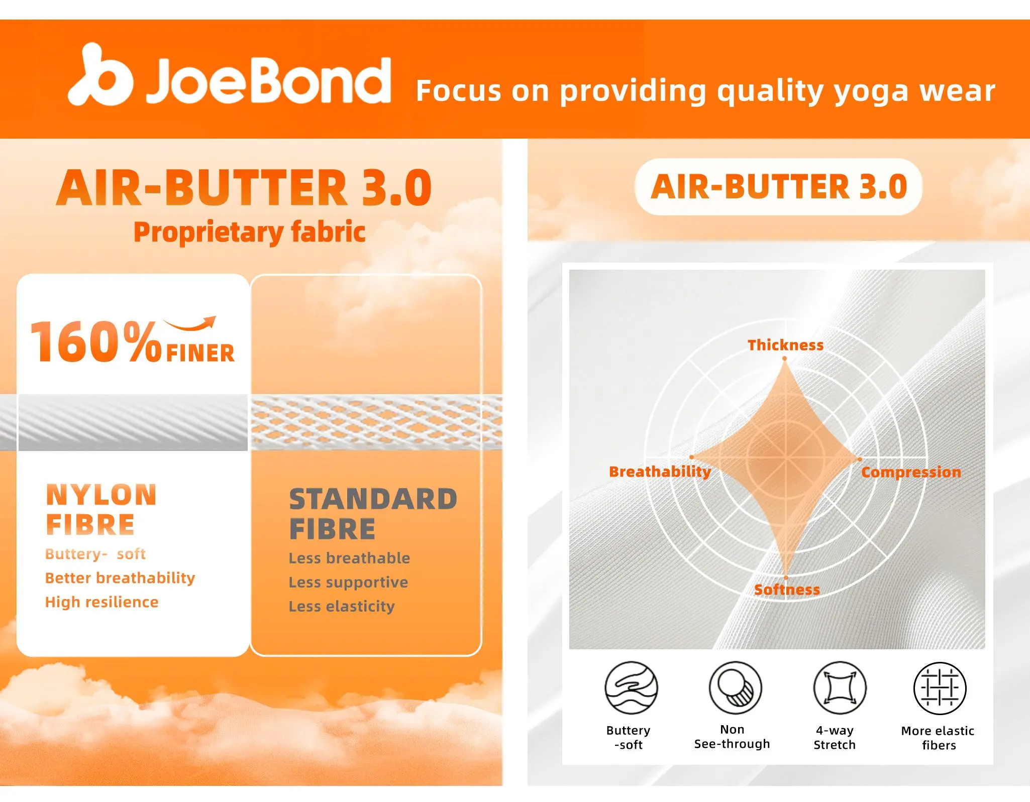 【Air-Butter High Stretch Fabric】:Crafted with 160% finer fibre than standard fibre and buttery- soft handfeel, provides excellent flexibility, perfect for a fullrange of motion for all your activity.