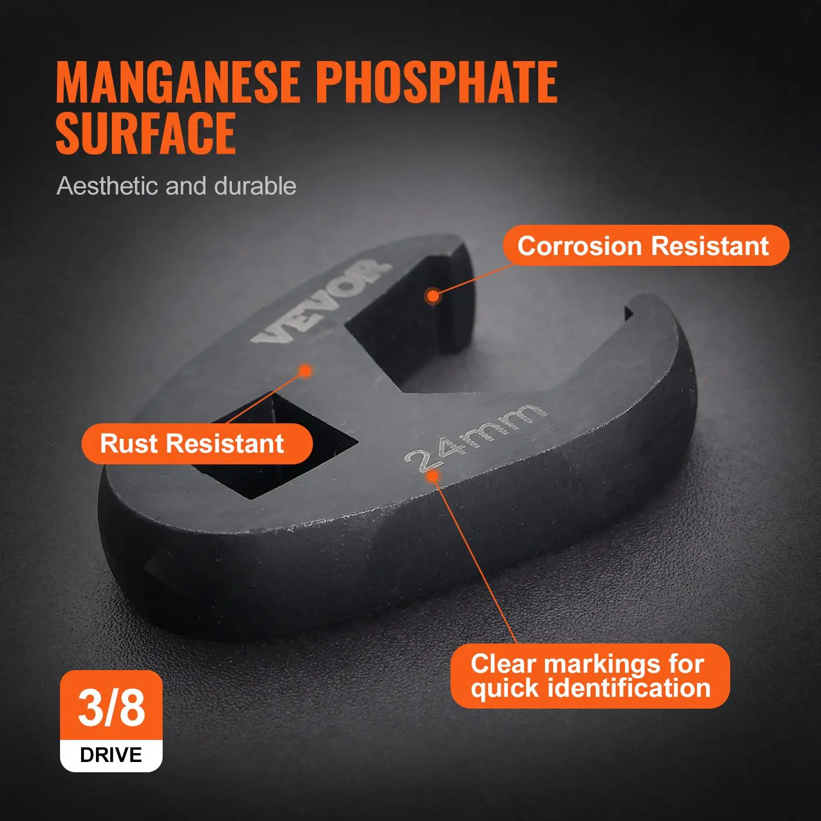 • Rust & Corrosion Resistance: Our carefully crafted crow foot wrenches set undergo manganese phosphate surface treatment, providing excellent durability. They maintain their rust and corrosion resistance over time, extending their lifespan.
