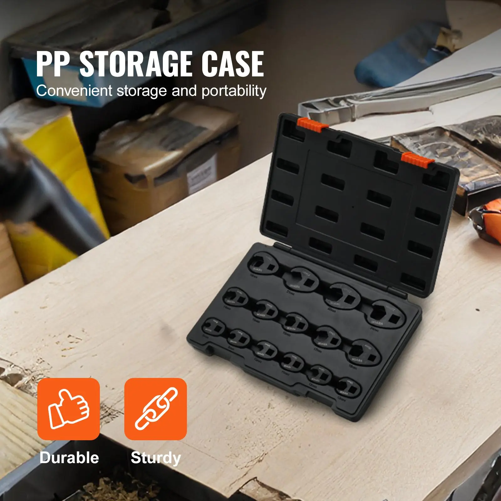 Equipped with a sturdy PP storage case, this crow foot wrenches set simplifies organization, transportation, and storage. Both the wrenches and tray are labeled with sizes, making it effortless to select the right tool and boosting repair efficiency.