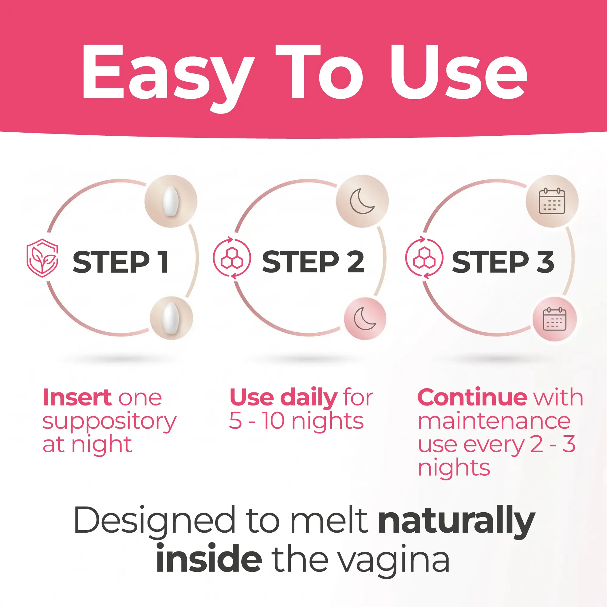 Insert 1 ovule vaginally at night as part of your routine.