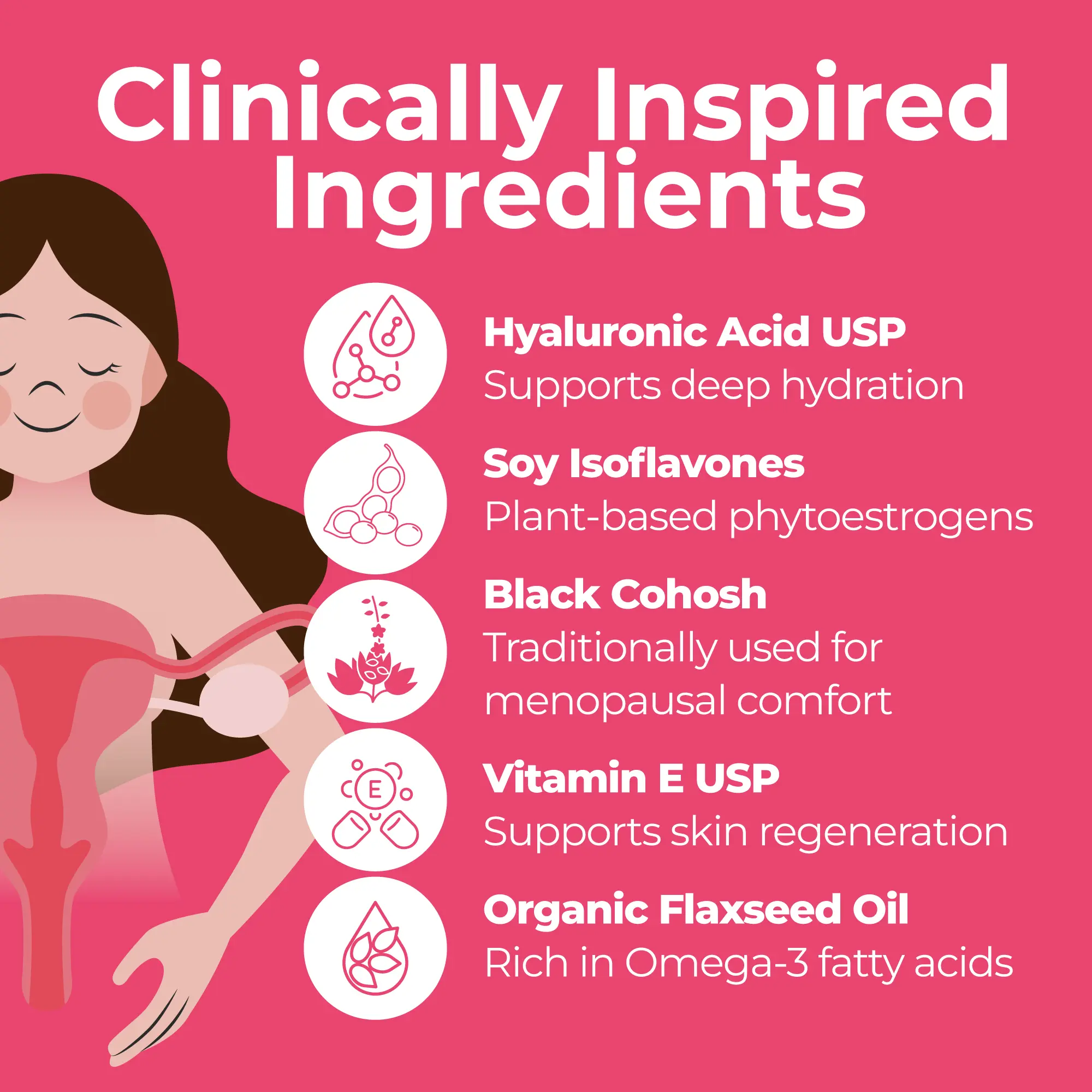 • Soy Isoflavones – Plant-based compounds traditionally used for feminine balance
