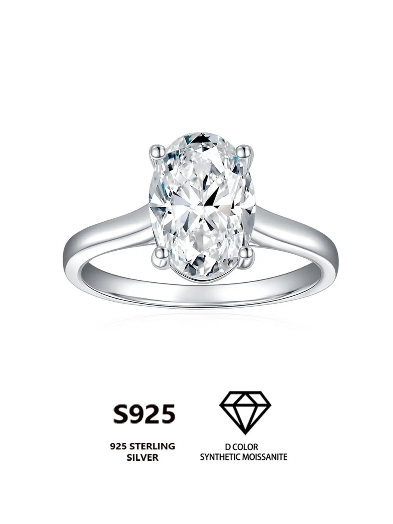 S925 Sterling Silver Synthetic Moissanite Ring, Oval Cut Ring, Engagement Ring, Wedding Jewelry, Fashion Jewelry Accessories for Women