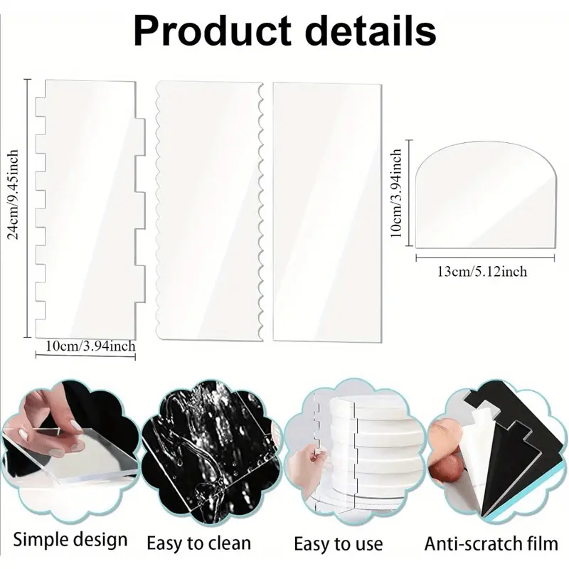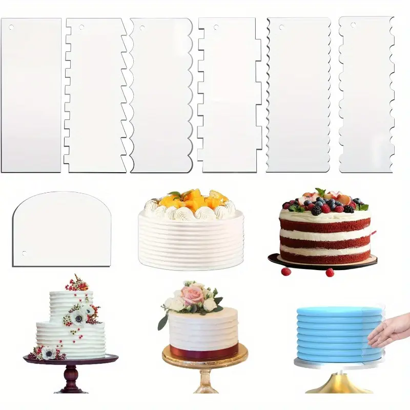 7pcs Large Clear Acrylic Cake Scraper Set Cake Icing Smoother Scraper Frosting Comb Cake Edger Stripes Contour Comb Pastry Cutter For Mousse Butter Cream Cake Decoration