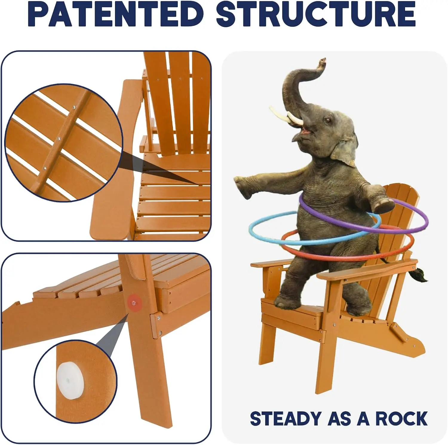 The chair features a wood-like texture crafted from recyclable HDPE with enhanced durability. Its flexible seat design contours to your body, ensuring exceptional comfort.