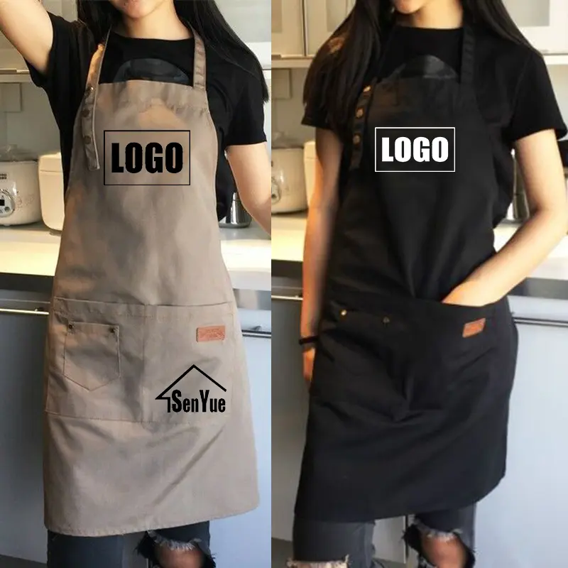 Custom Brand Logo Kitchen Aprons For Woman Men Chef Work Grill Restaurant Bar Shop Cafes Beauty Nails Studios Custom Uniform