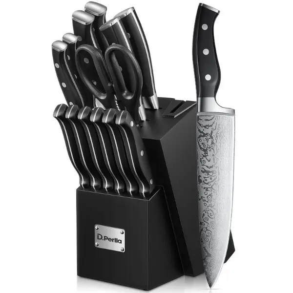 ·Built-in Sharpener: The set includes a built-in sharpener in the knife block, ensuring your knives stay sharp with just a few swipes, allowing for effortless food preparation over time.