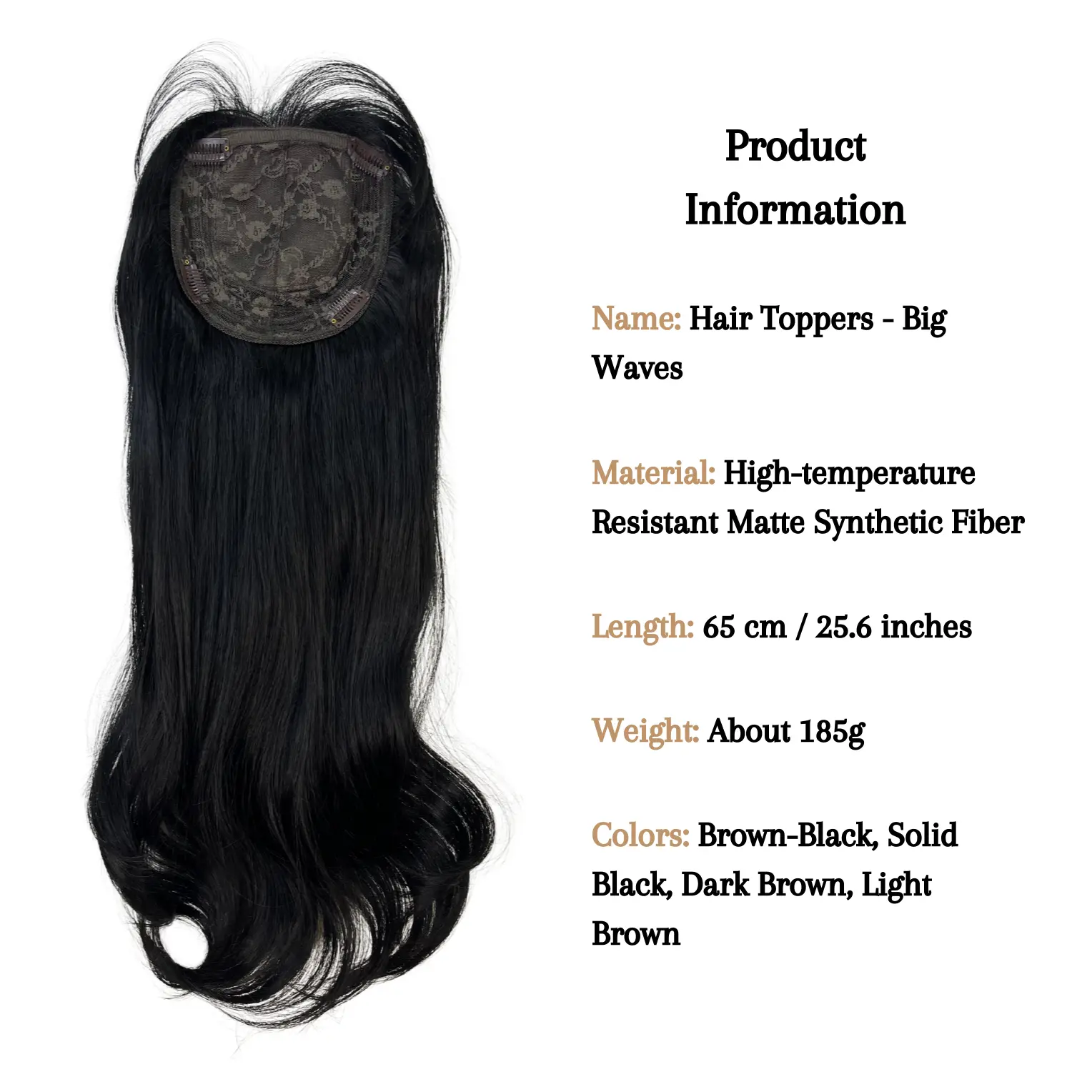 Experience effortless elegance with our Hair Toppers – Big Wave Style, also known as the “No-Wig Cap Wig.” Featuring soft, voluminous big waves and made from premium heat-resistant synthetic fibers, these toppers are a lightweight, comfortable alternative to traditional wigs and extensions. Whether you want to add volume, cover thinning areas, or refresh your style, this topper blends seamlessly with your natural hair for a polished and glamorous look.