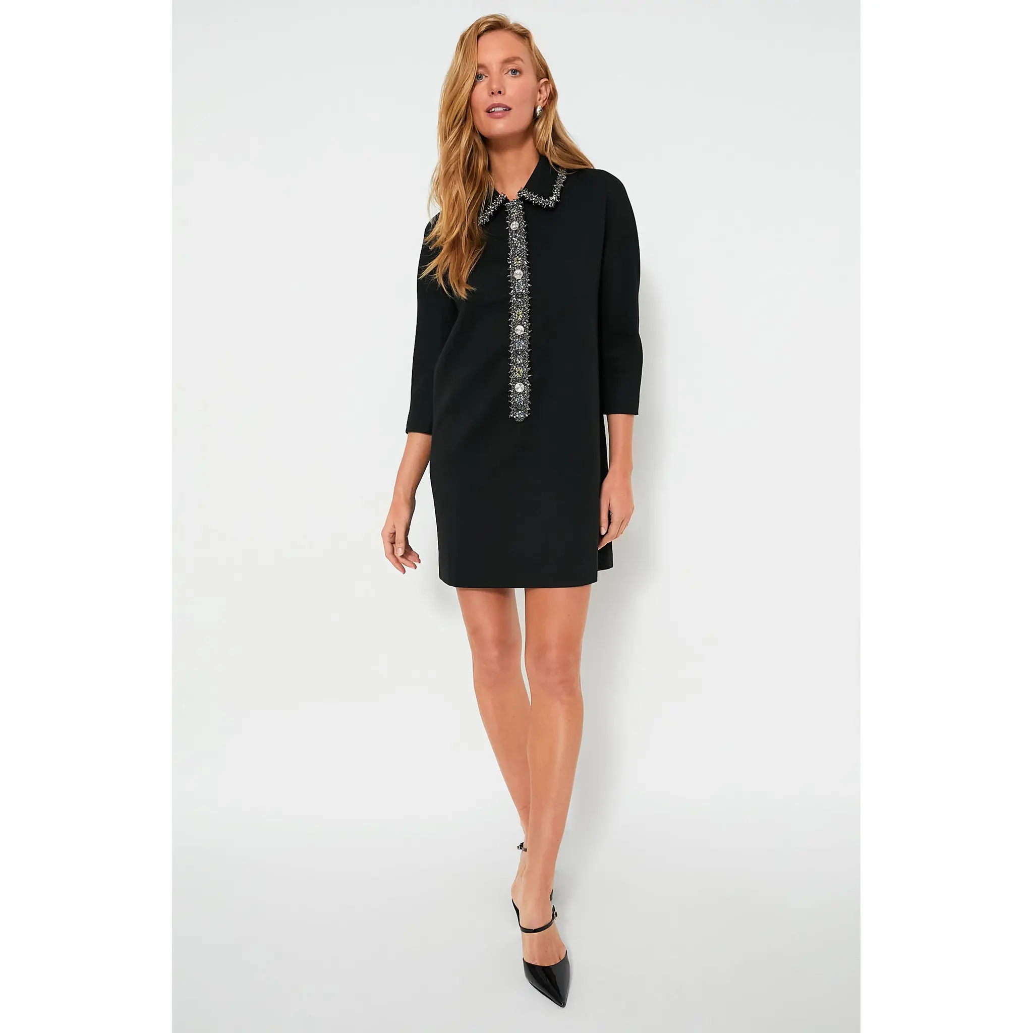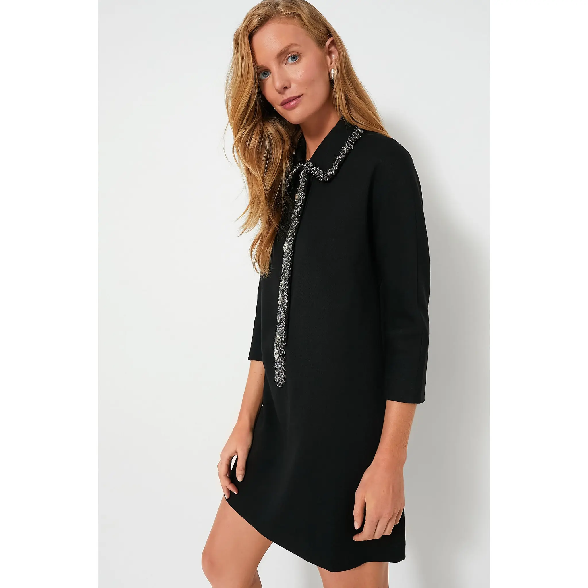 You'll be bound for endless compliments the moment you arrive in the Midnight Embellished Nicola Dress. The embellished collar and placket is a shimmering work of art that will capture the spotlight wherever you go and with a relaxed fit, this glamorous mini flatters all silhouettes. Just add heels and clutch for a jaw-dropping look prime for opera invites, cocktail soirees, nights out and beyond.