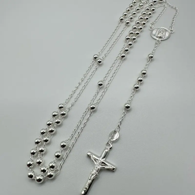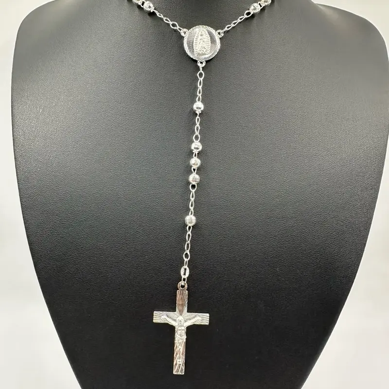 with a cross, this rosary-inspired Y-necklace symbolizes spiritual strength