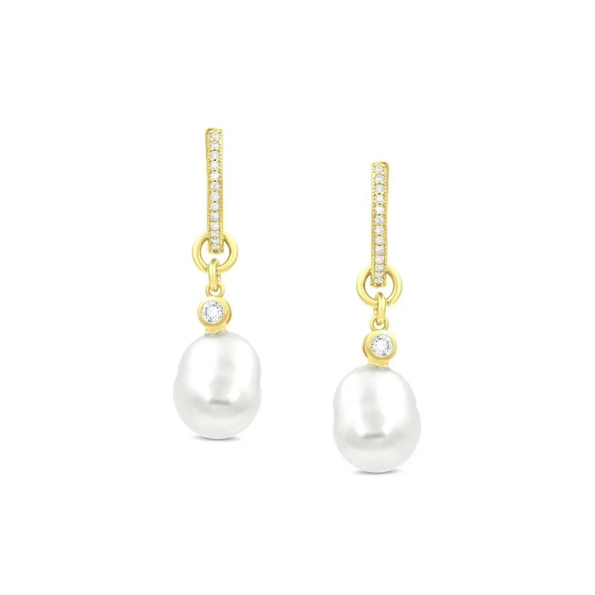 Gold plated sterling silver hoops earrings with fresh water pearl. Artistic way to dress up any outfit.