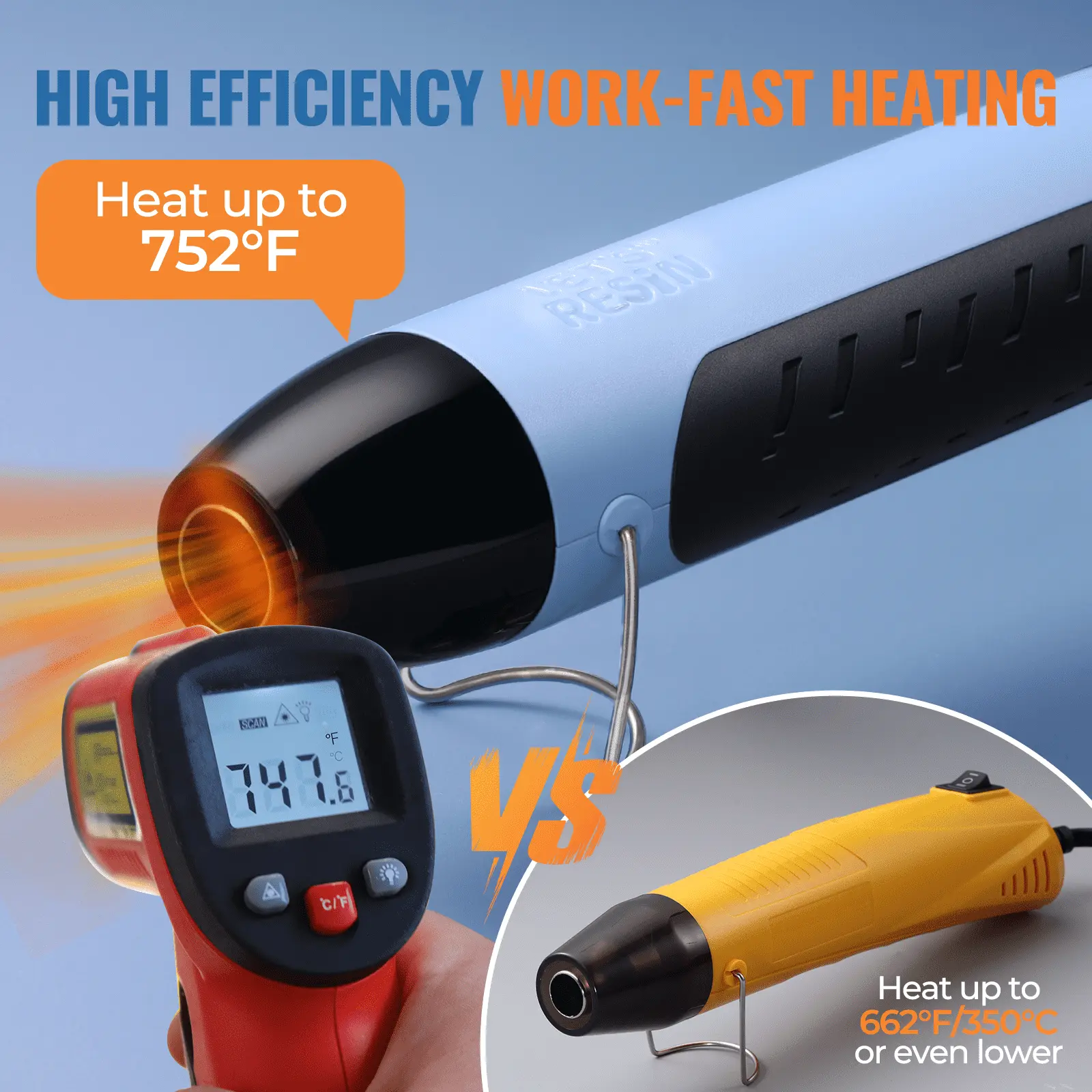 ·Fast Heating Dual Temp Control: LET'S RESIN heat gun is equipped with a high power of 350W and 2 temp adjustment settings. The I-level is 482 ° F/250 ° C with a wind speed of 150L/min, and the II-level is 752 ° F/400 ° C with a wind speed of 350L/min. Reach your desired working temperature with our heat gun for craftswithin seconds and work efficiently.