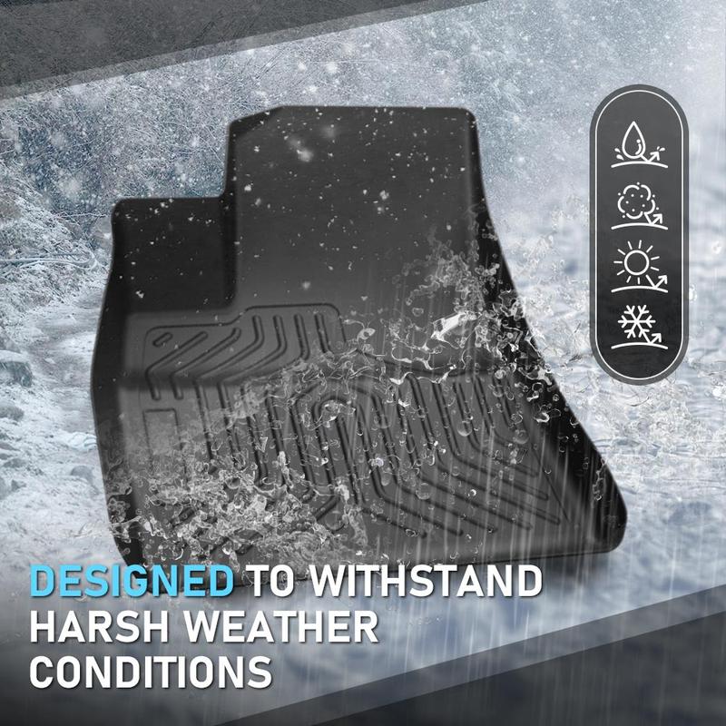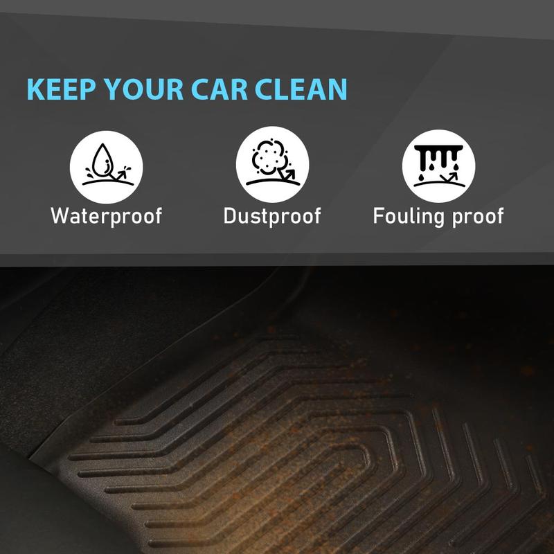 The Floor Mats are waterproof and has excellent crease recovery, they will protect your vehicle against spills, debris, rain, snow, and mud in any weather condition.