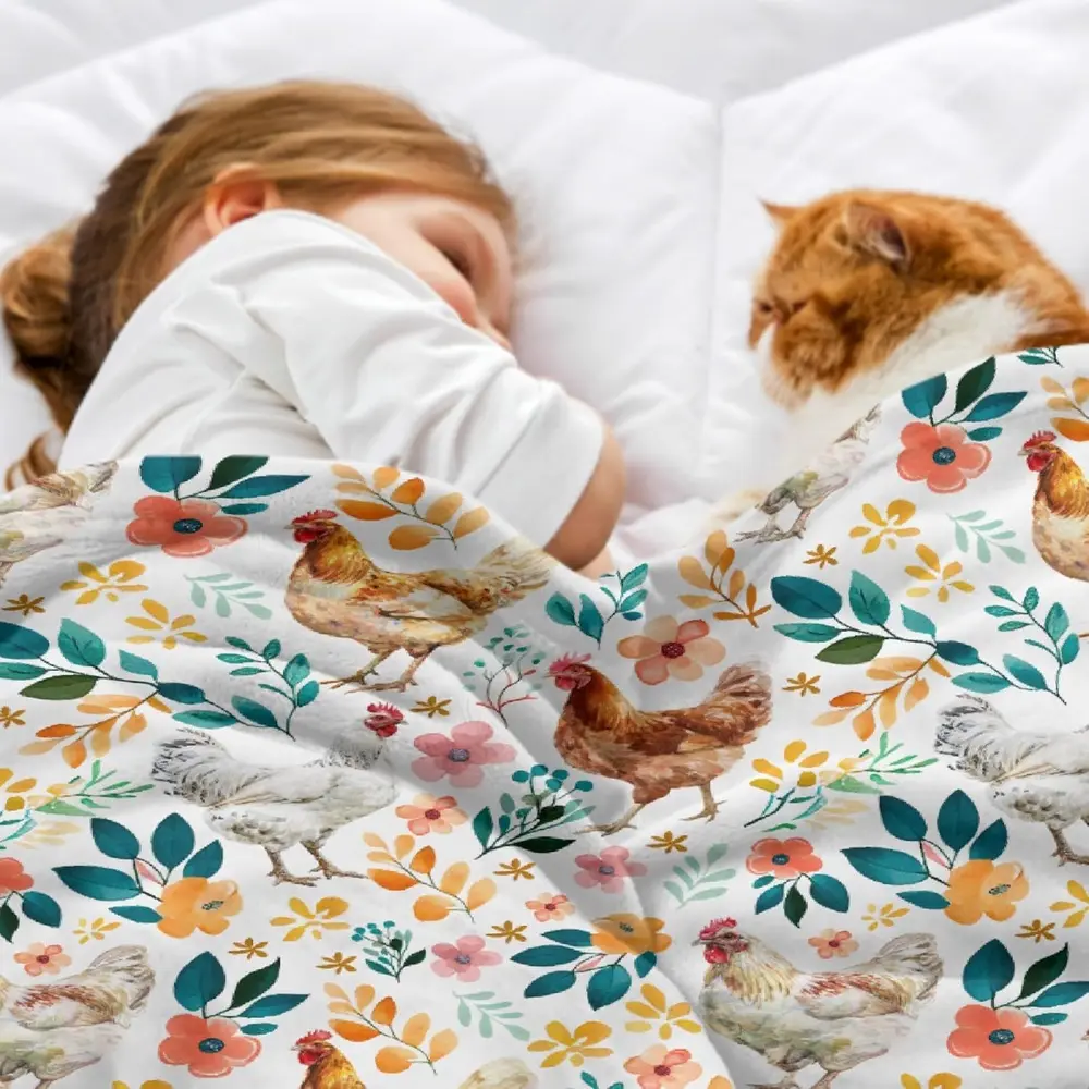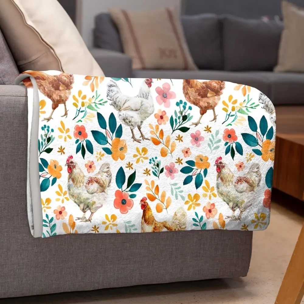 Rustic Chicken Super Soft Flannel Throw Blanket for Boys and Girls, Animal Farmhouse Decoration, For Sofa Bed Sofa Living Room, Farm Lovers Gifts