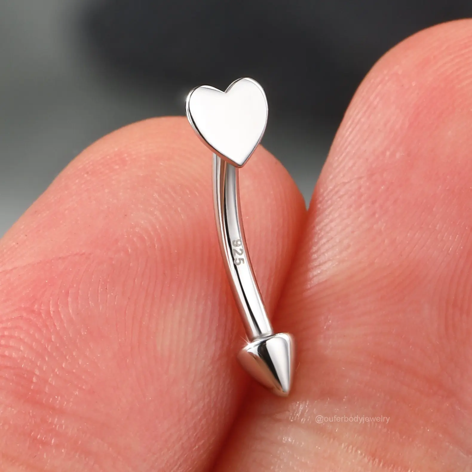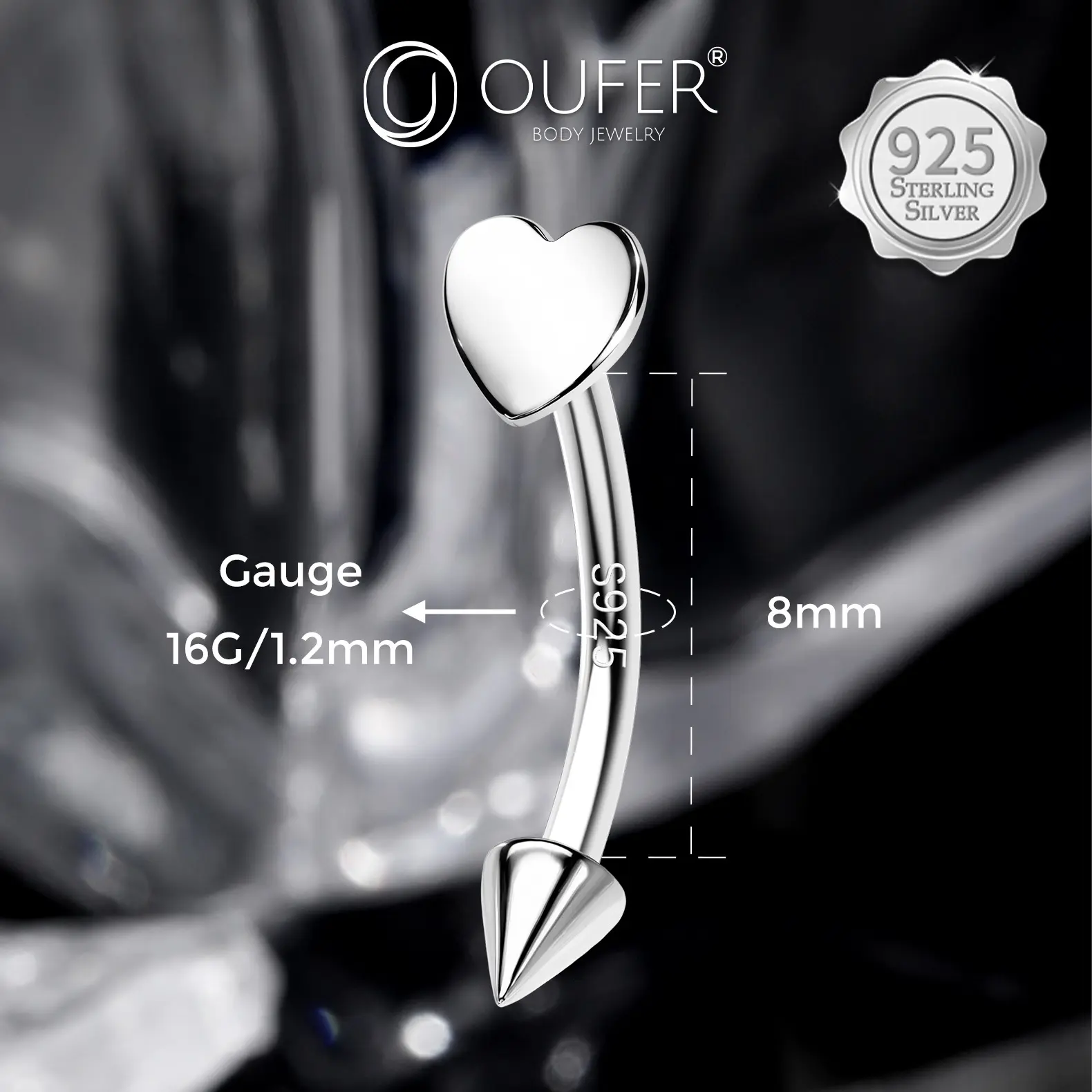 Oufer 16G S925 Flat Heart & Spike Eyebrow Rook Ring Vertical Labret Snake Bite Piercing Ring Bar Length 8mm Trendy Fine Jewelry Trendy Fine Jewelry Trendy Fine Jewelry