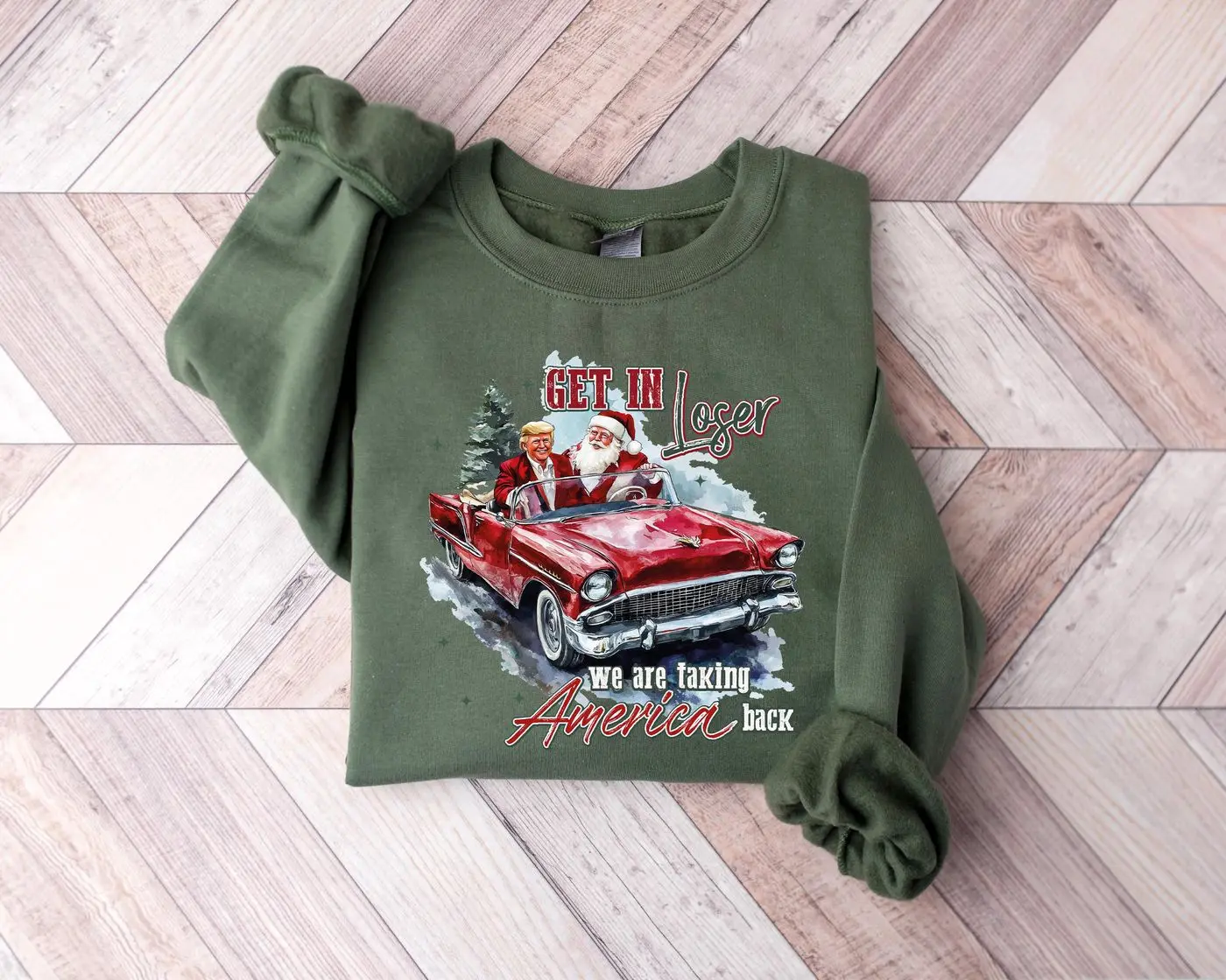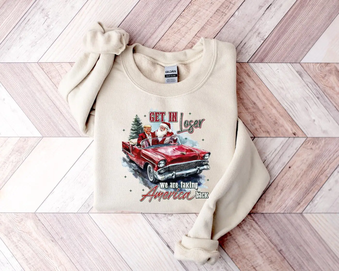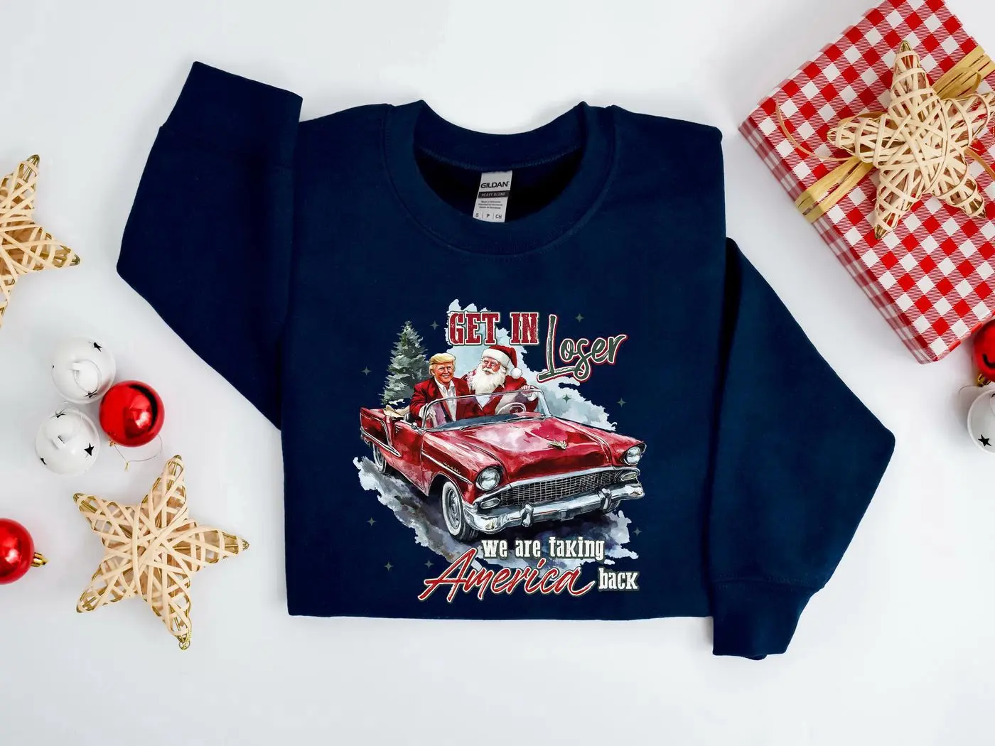 Trump Get In Loser We Are Taking America Back Sweatshirt, Humorous Trump Christmas Shirt