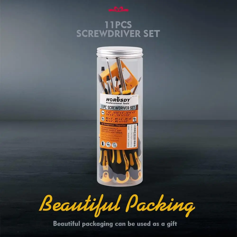 Introducing the 11-Pieces Magnetic Screwdriver Set, designed for efficient fastening and loosening of seized screws.