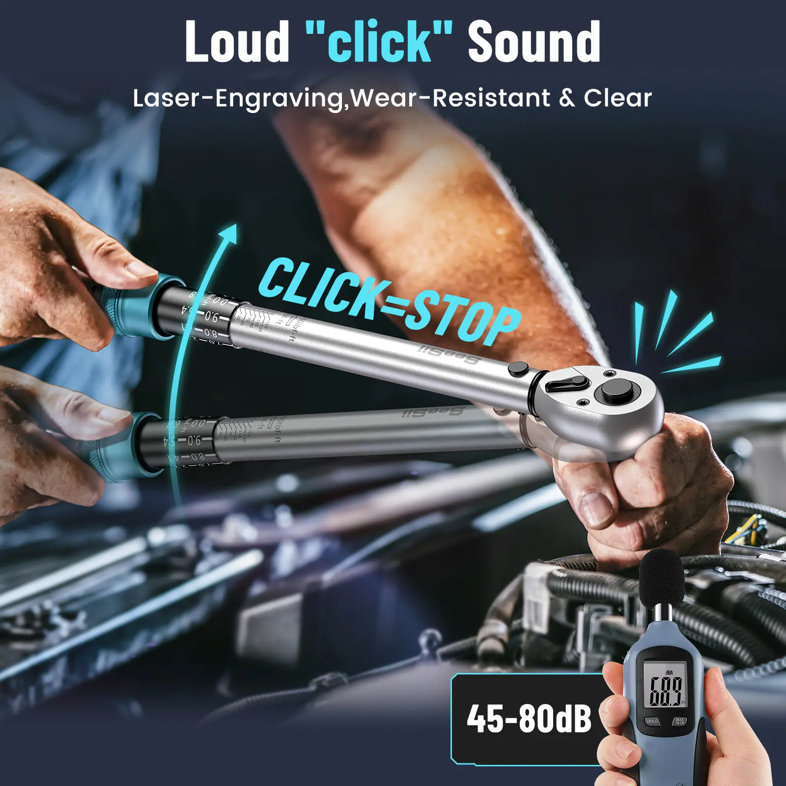 This torque wrench set has been ingeniously upgraded to emit a louder "Click" sound. When the torque value surpasses 5 Nm, a distinct and powerful click can be clearly heard, while for values lower than 5 Nm, a more subdued click is produced. This unique click sound serves as a reliable indicator that the preset torque has been reached, promptly alerting you to cease applying force. This feature not only enhances the safety of your work but also ensures the accuracy and consistency of each tightening or loosening operation.