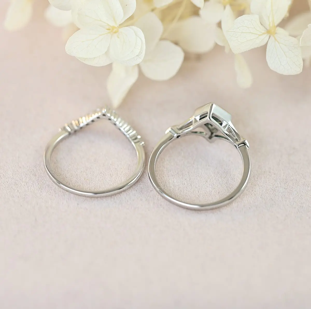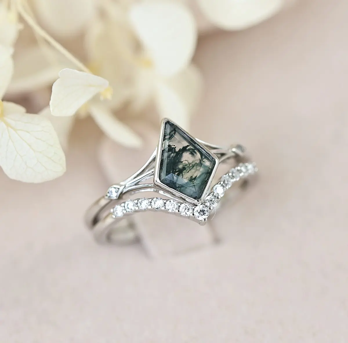 Kite Cut Moss Agate Engagement Ring & Wedding Band Bridal Ring Set Sterling Silver Size 4-9 S14273