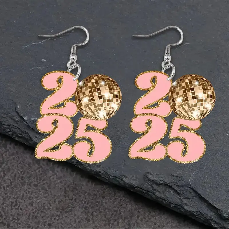 Product information: Processing Technology: Printing Color: 2025 ball light earrings Applicable people: Unisex Material: acrylic Length: 5.5CM Width: 2CM