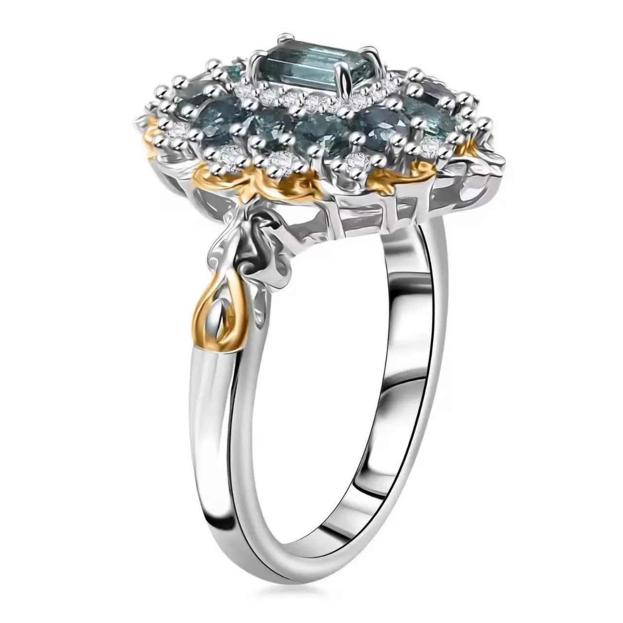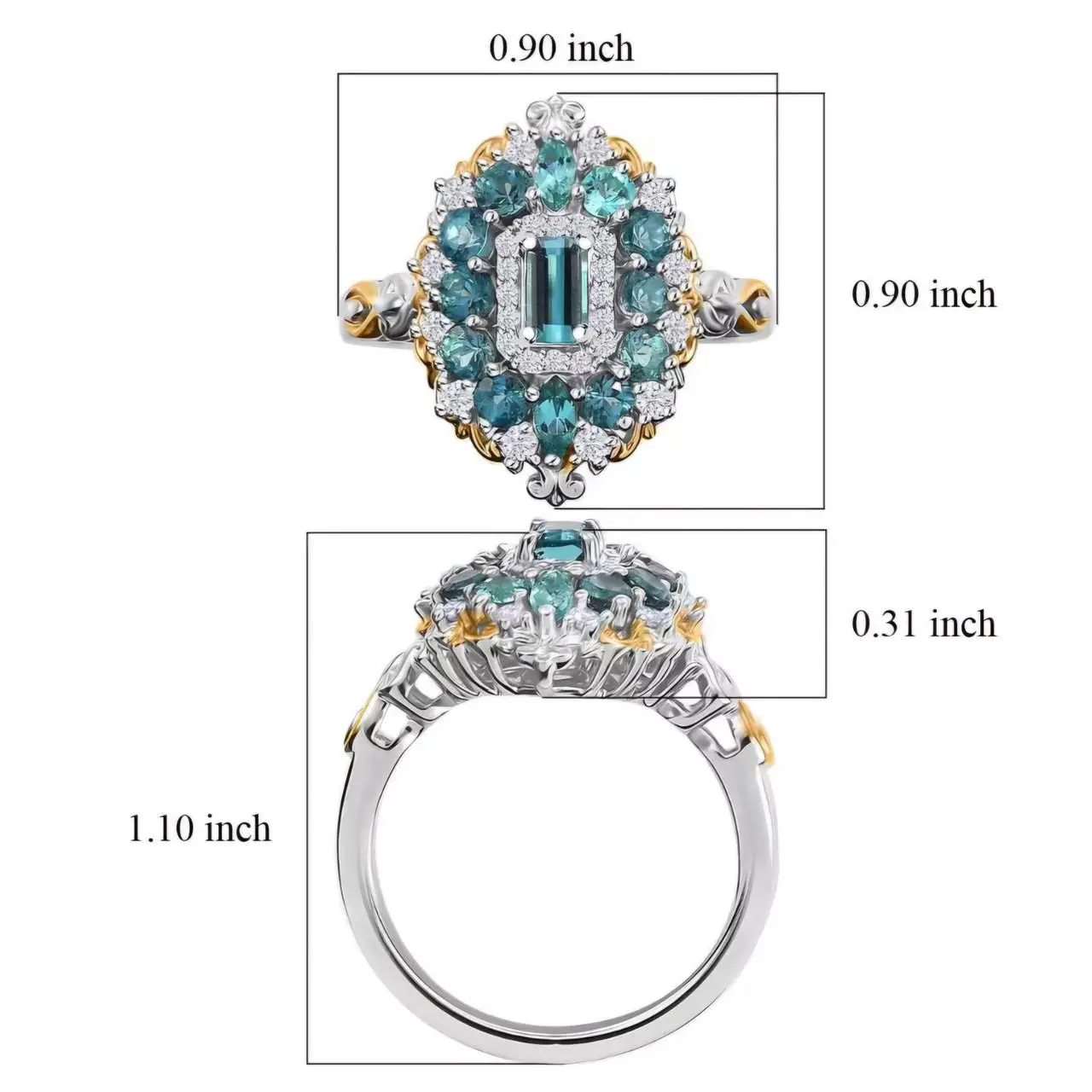 Elevate your jewelry collection with our exquisite Indicolite Tourmaline & Moissanite Halo Ring. Crafted in 18K Yellow Gold/Rhodium over Sterling Silver, this ring features a stunning combination of indicolite tourmaline and moissanite stones totaling 1.35ctw. The halo design adds a touch of elegance to this timeless piece.