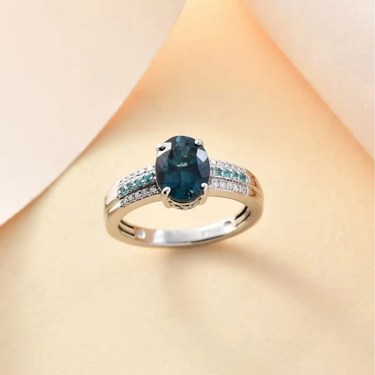 Indicolite Tourmaline, Paraiba Tourmaline & Diamond Ring in Solid 950 Platinum Ring 2.75ctw