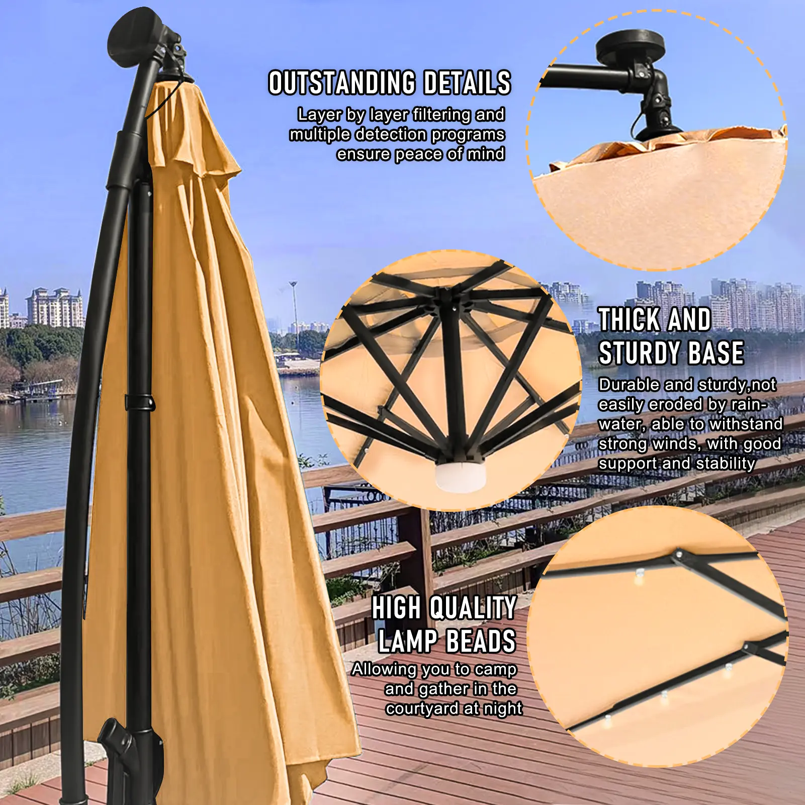 Wide Application: LED lighted patio umbrella add a festive mood to any occasion. Great for entertaining, picnics, BBQ, garden parties, beach, camping, or relaxing in the shade.