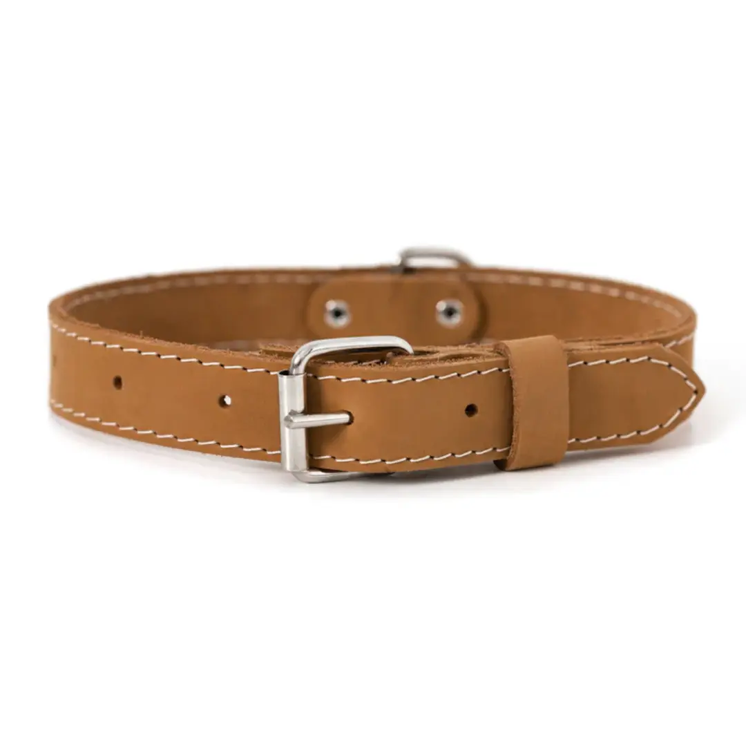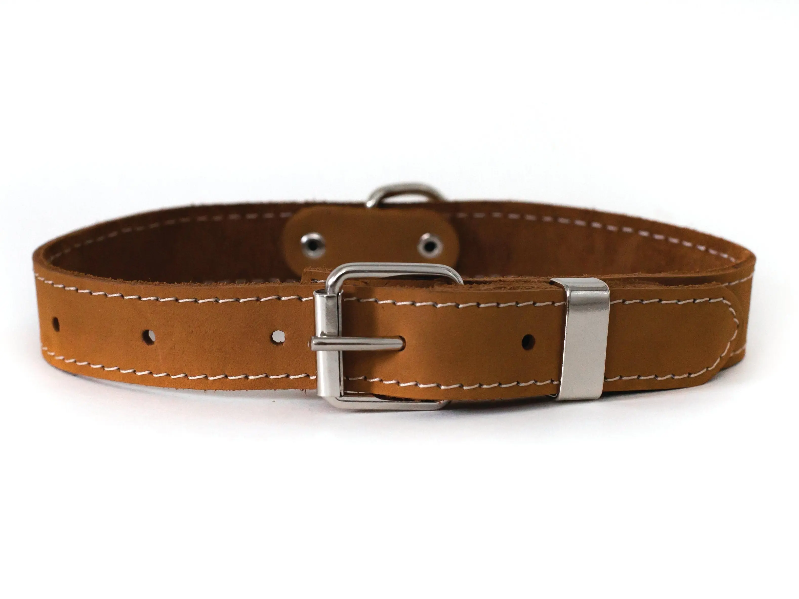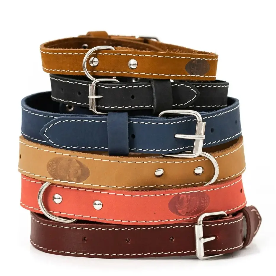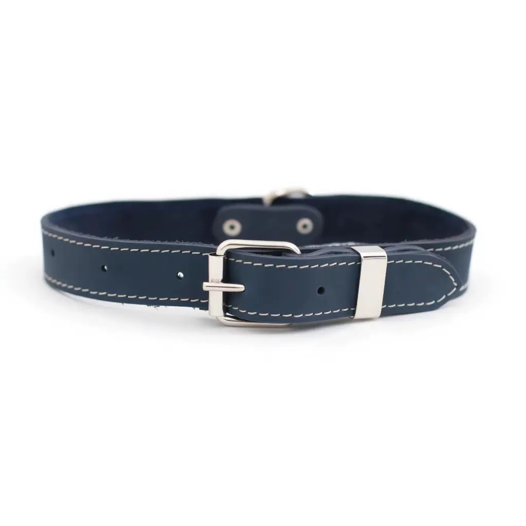 This collar marries American leather and European steel, ensuring durability and quality. The flat design with polyester stitching adds a stylish pop. An extra leather tongue protects your pet. 🌟