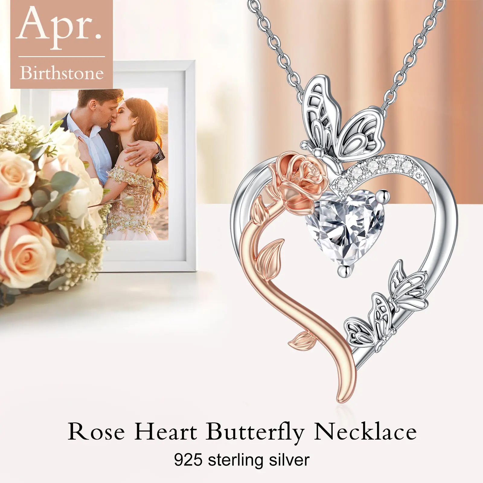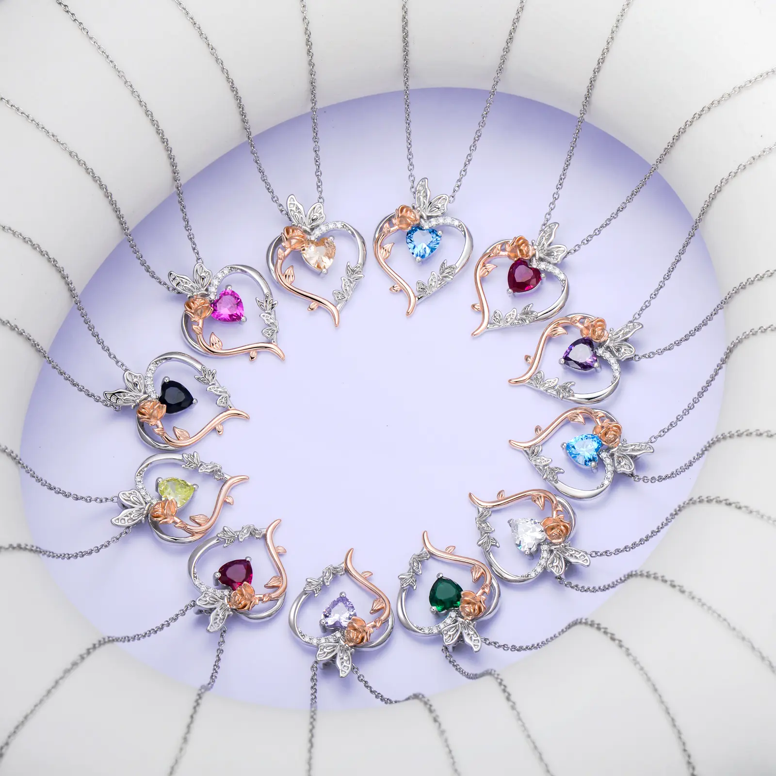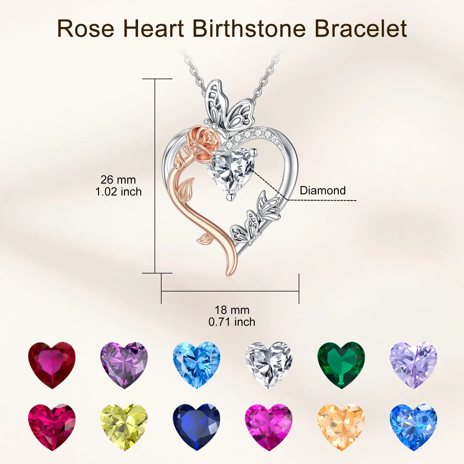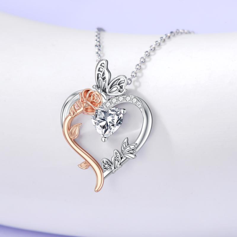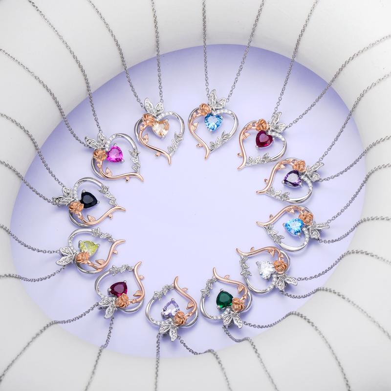 Rose Heart Birthstone Necklace for Women