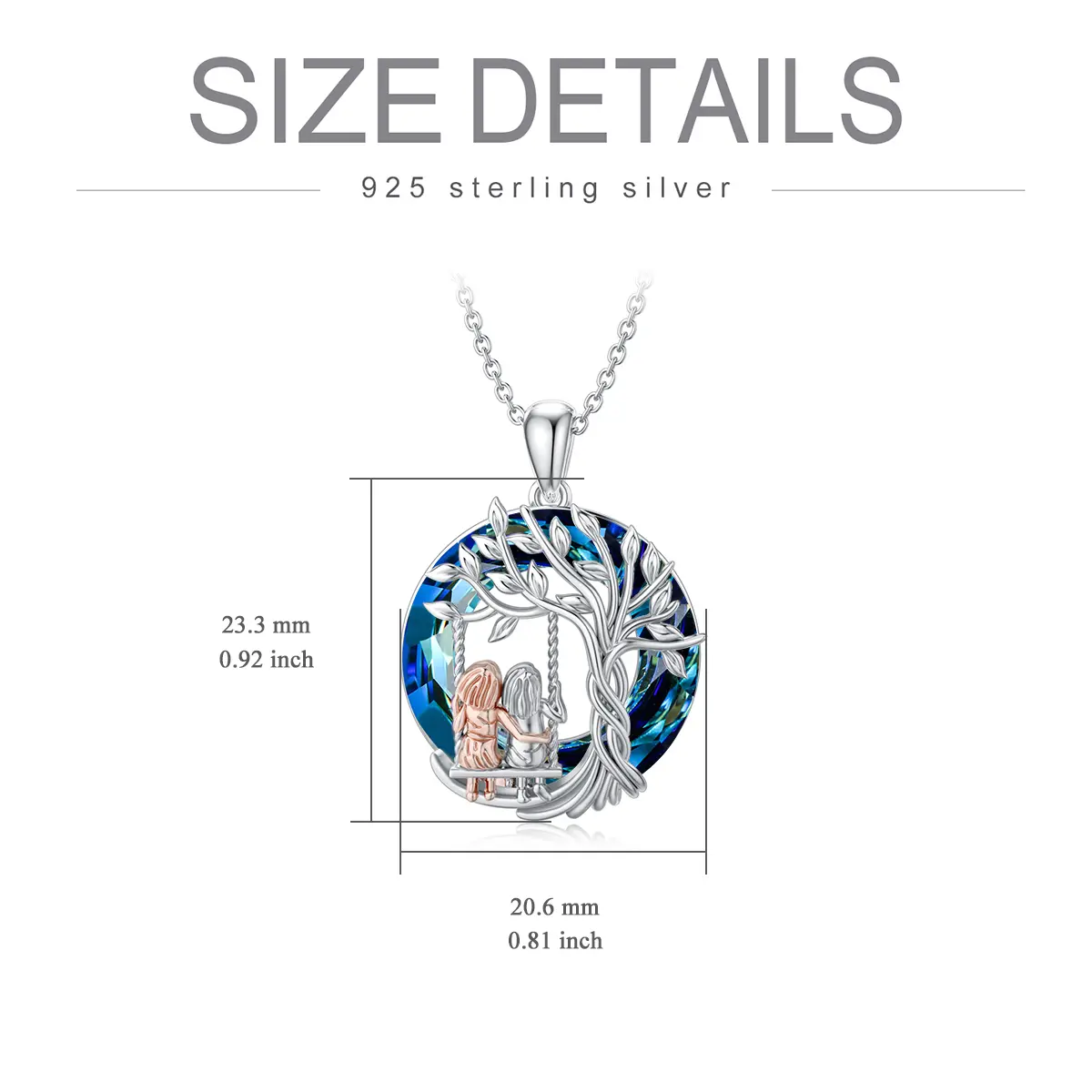 TOUPOP's sister necklace is a thoughtful gift for any occasion. Crafted from 925 sterling silver, it's hypoallergenic. The necklace measures 0.92*0.82 inches, with a 18+2-inch chain. It's perfect for birthdays, anniversaries, Valentine's Day, Mother's Day, and Christmas. Comes in a beautiful gift box. Choose from 4 crystal colors.