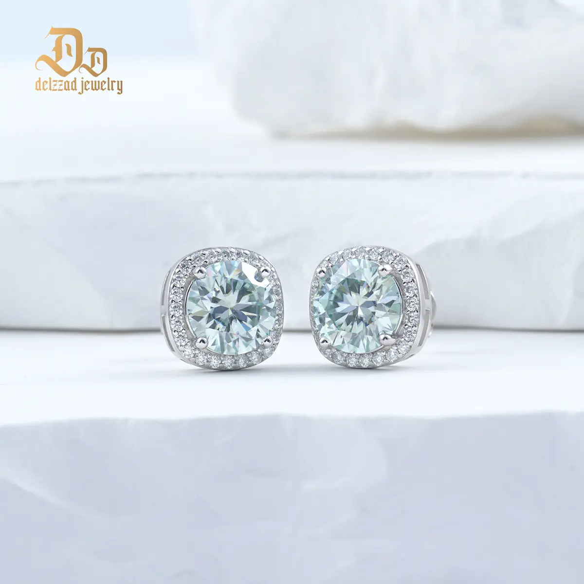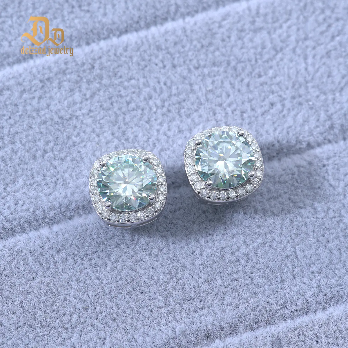 ·Classic round brilliant cut synthetic moissanite are held in place by a hand-set square halo to ensure the stones never fall out.