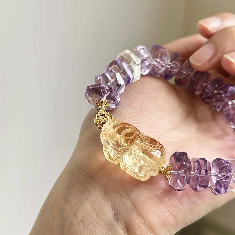 This crystal bracelet is a captivating piece of jewelry, meticulously crafted with high - quality white crystal, amethyst, and citrine.