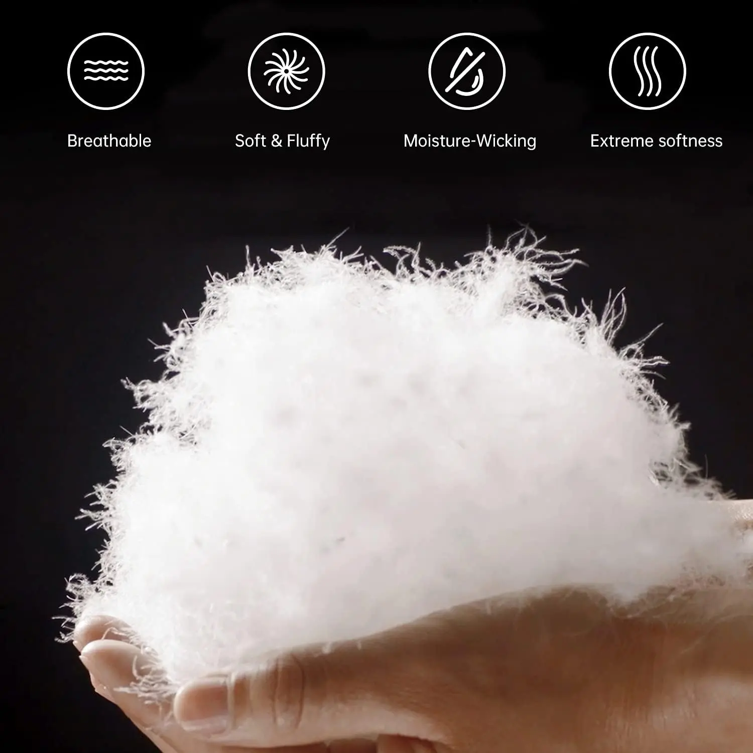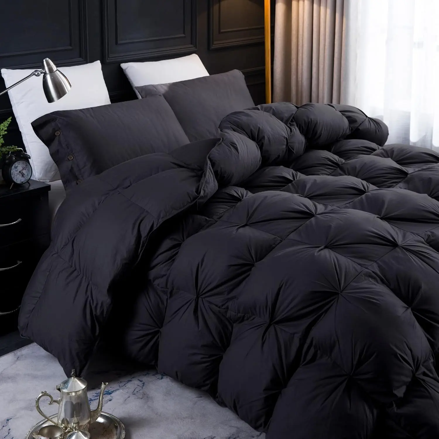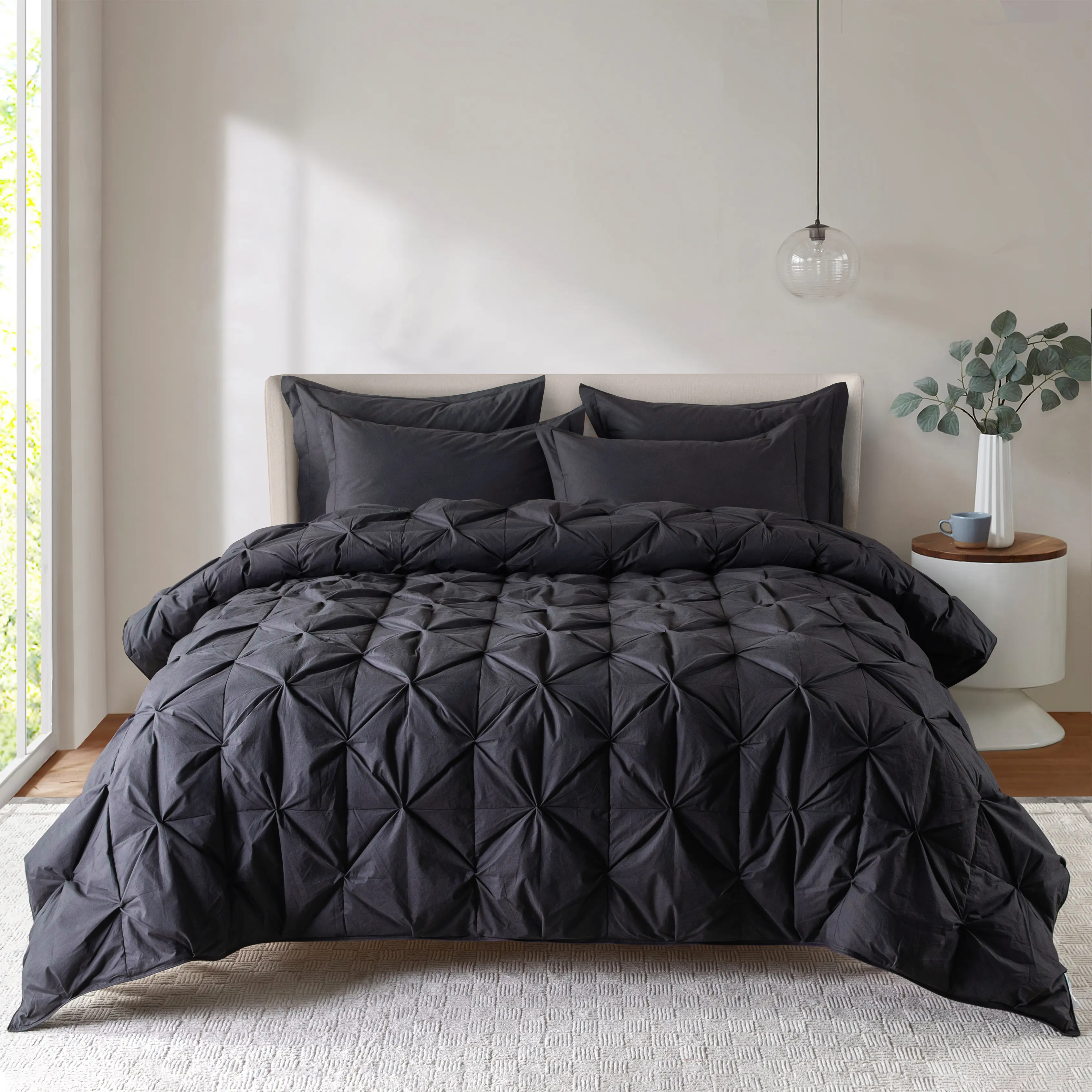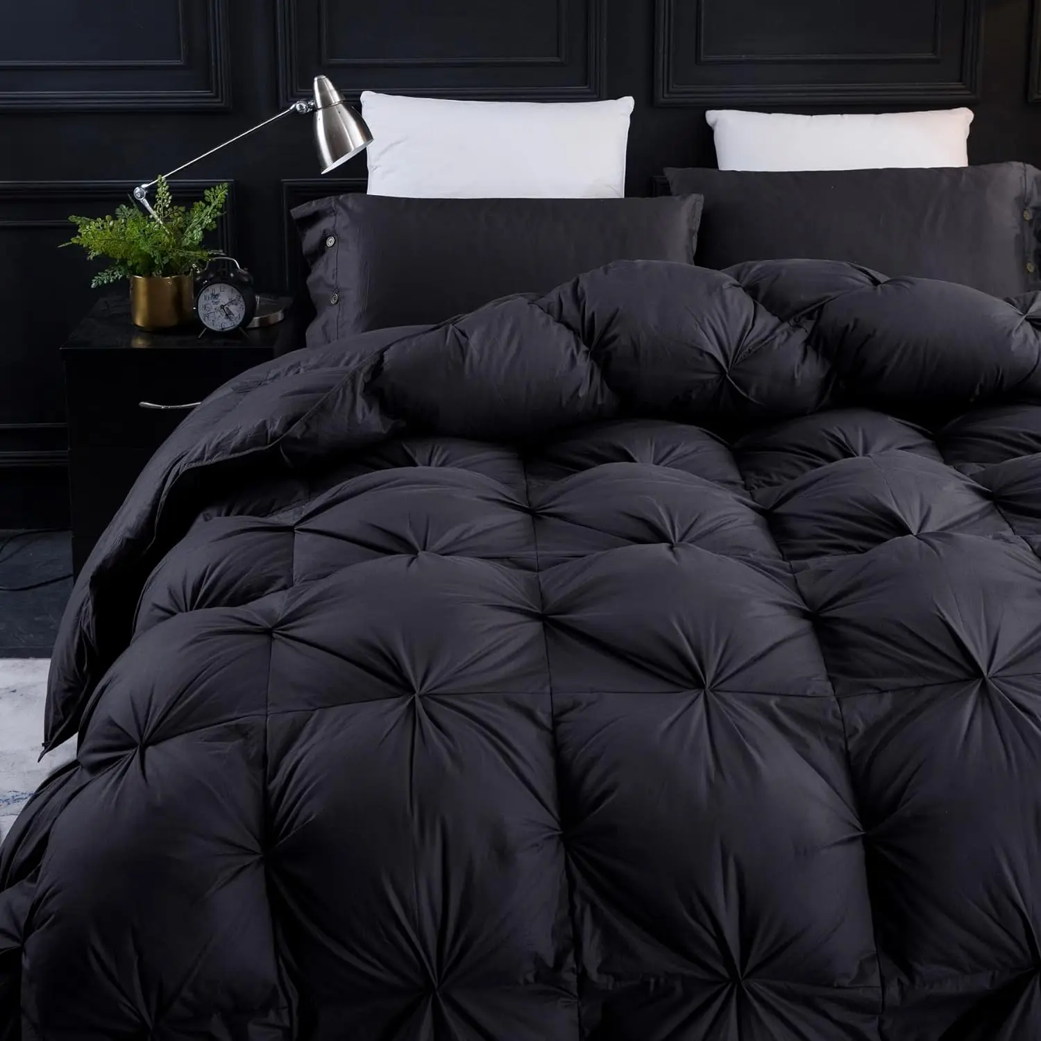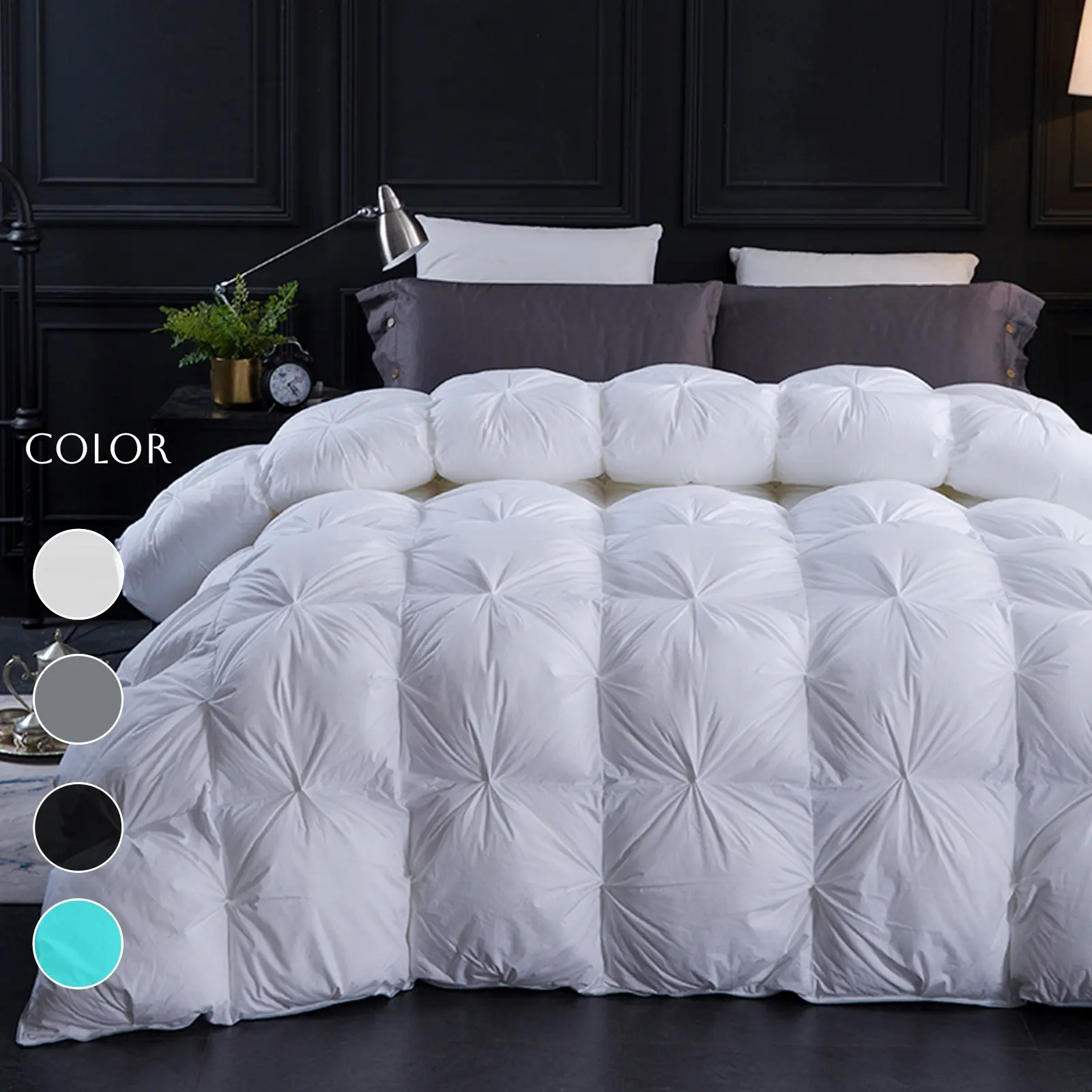 This down comforter feels super soft and smooth, just like one you’d find in a nice hotel. It keeps me warm without getting too hot, so it’s great for all seasons. The feather and down filling is fluffy but not too heavy. I also like the pretty pinch pleat design and the corner tabs that keep it in place. It made my bed feel extra cozy and comfy!
