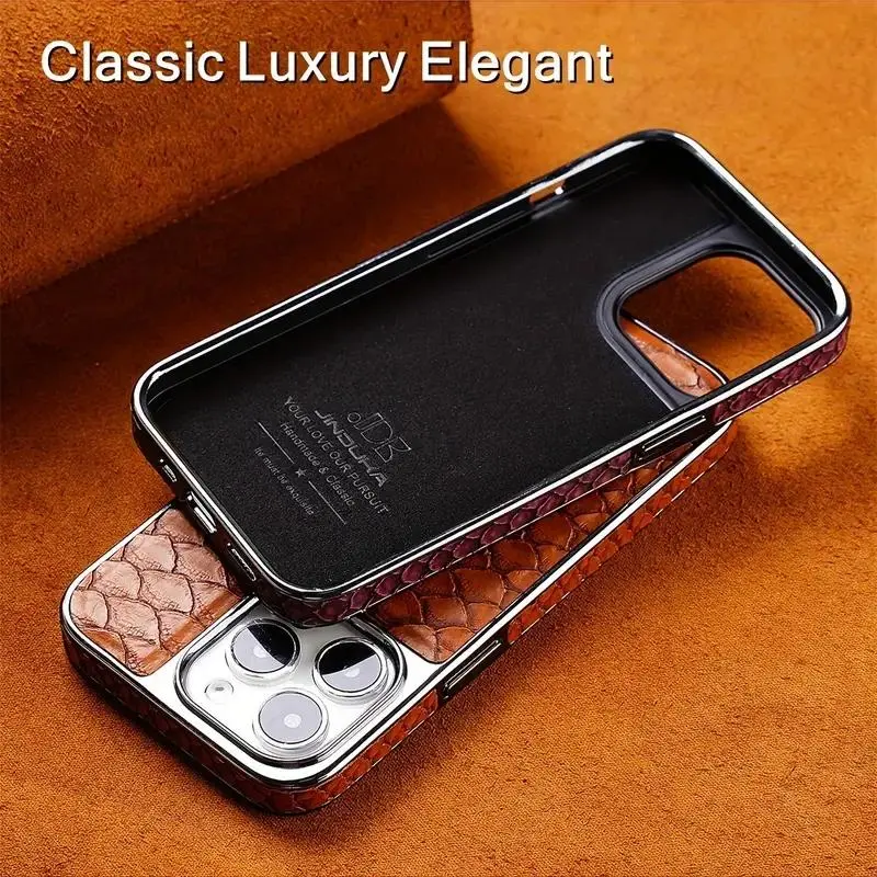 Ever wish your iPhone case could turn heads while keeping your device safe? Meet this Snake Skin Pattern Phone Case, the perfect blend of style and protection. Crafted with premium faux leather and a sleek electroplated frame, it wraps your iPhone 15 or 16 series in luxury and durability. The unique snake skin texture not only looks stunning but also offers a comfy, anti-slip grip that helps prevent accidental drops. Handmade with care, this case boasts wear and dirt resistance to keep it looking new for longer. Plus, the raised edges stand 0.3cm above your screen, giving extra defense against scratches and falls. Whether you’re at work, on the go, or out with friends, this slim yet shockproof cover has your back. It fits multiple models including iPhone 15 Pro Max and iPhone 16 Pro Max, making it a versatile choice. Inside the box, you’ll find your new favorite phone case ready to protect and impress. Upgrade your iPhone’s look and safeguard it with a touch of exotic elegance. Grab yours today and feel the difference!
