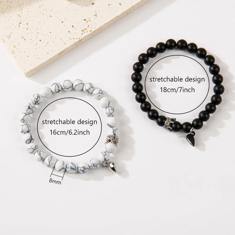 2 Pcs Elegant Couples Magnetic Stone Bracelets, Anniversary Couple Love, Heart Jewelry, Couples Beaded Stretch Bracelets Set, Perfect Valentine's Day Gift Couples Magnetic Couples Beaded bracelet valentine day gift fashion all-match jewelry charm