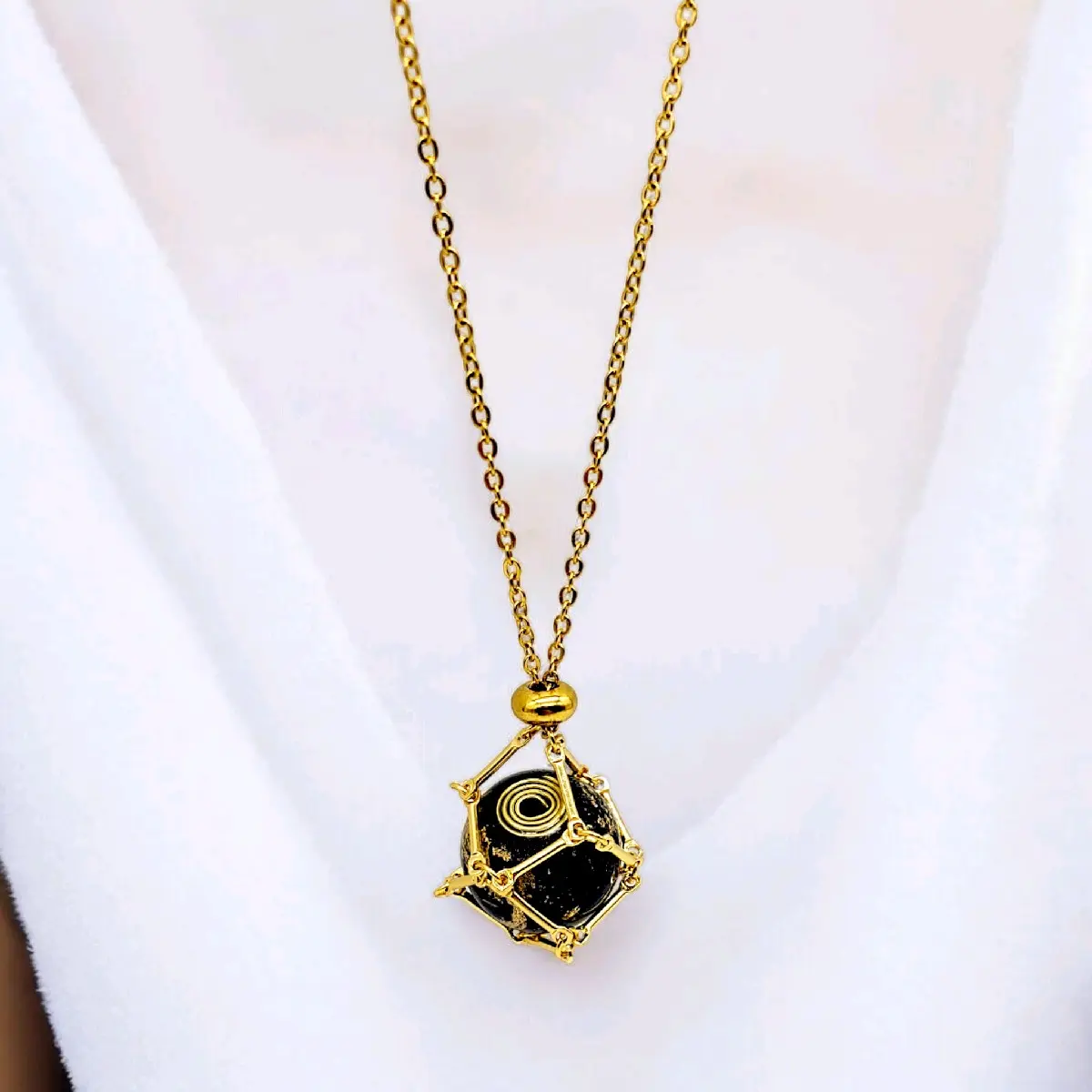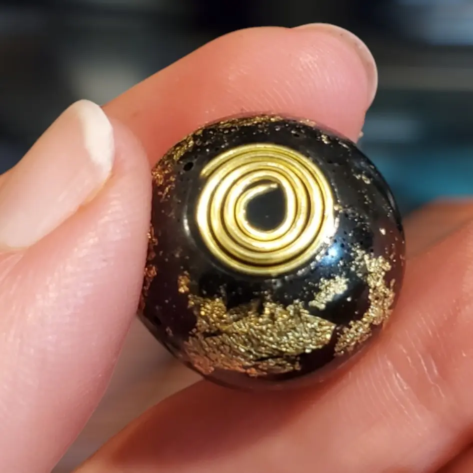 A handmade orgonite fashion model that is adjustable in length and can be worn for any occasion. It is a perfect gift for anyone who wants to support their vitality and well-being. The necklace has a Sphere made of 100% orgonite with shungite and black tourmaline, which offers grounding, detoxification, and neutralization.