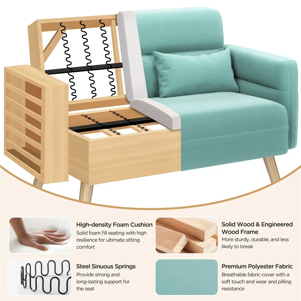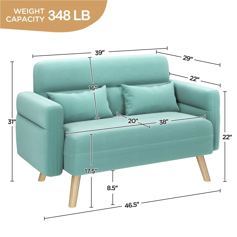 1. Solidly Constructed Loveseat: Founded atop four strong rubberwood legs, the small fabric sofa is crafted from a solid wood & plywood frame, long-wearing polyester fabric, dense foam fill, and metal springs for enhanced sturdiness and durability. The strong wooden construction can hold up to 348 lbs