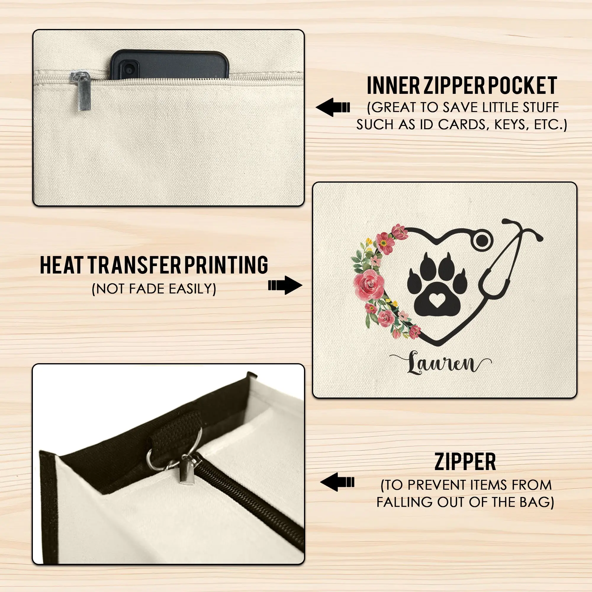 ·Secure Closure: Tote bag with zipper zipper keeps your belongings safe and prevents accidental drops.