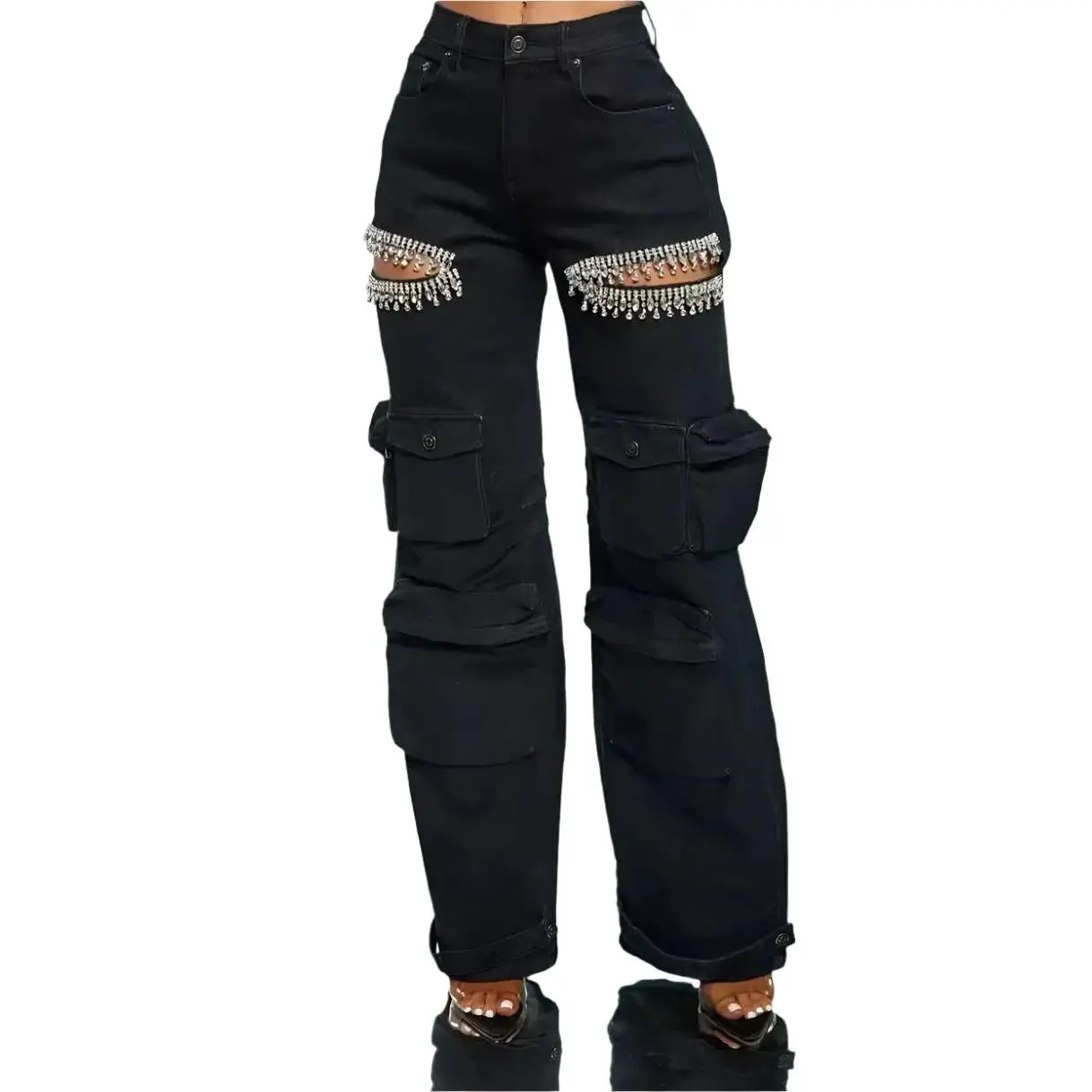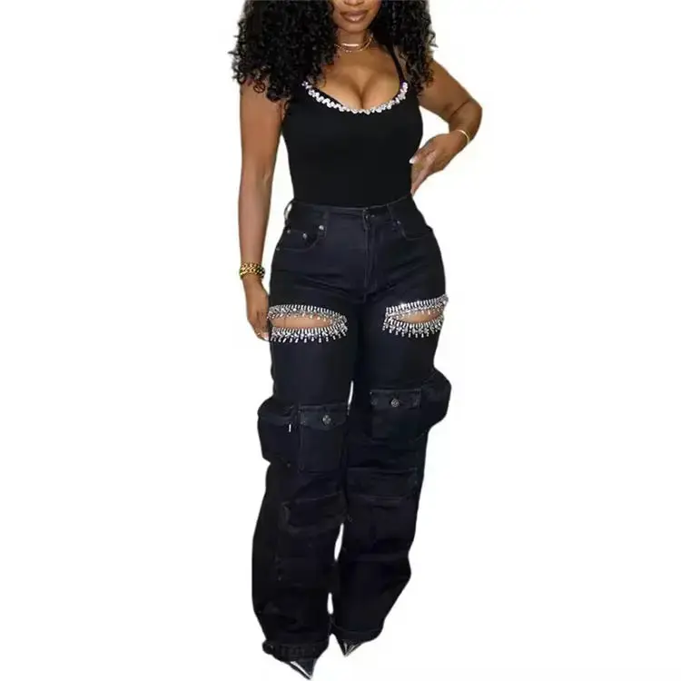 The "Crystal" Diamond cargo jeans are perfect for those who want to look stylish while also being practical. The jeans are available in a range of sizes and colors, so you can choose the one that best suits your personal style.