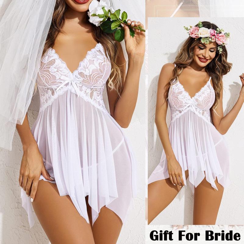 ·Lace lingerie is made of 100% Polyester elastic lace mesh material, no-worries scratch the skin.Lace lingerie is made of elastic lace mesh material, no-worries scratch the skin.Lingerie for women/lace lingerie for women which feature floral lace cups with cute bow decor, adjustable shoulder straps, flowing asymmetrical hem, and matched sheer G-string, sexy and elegant.