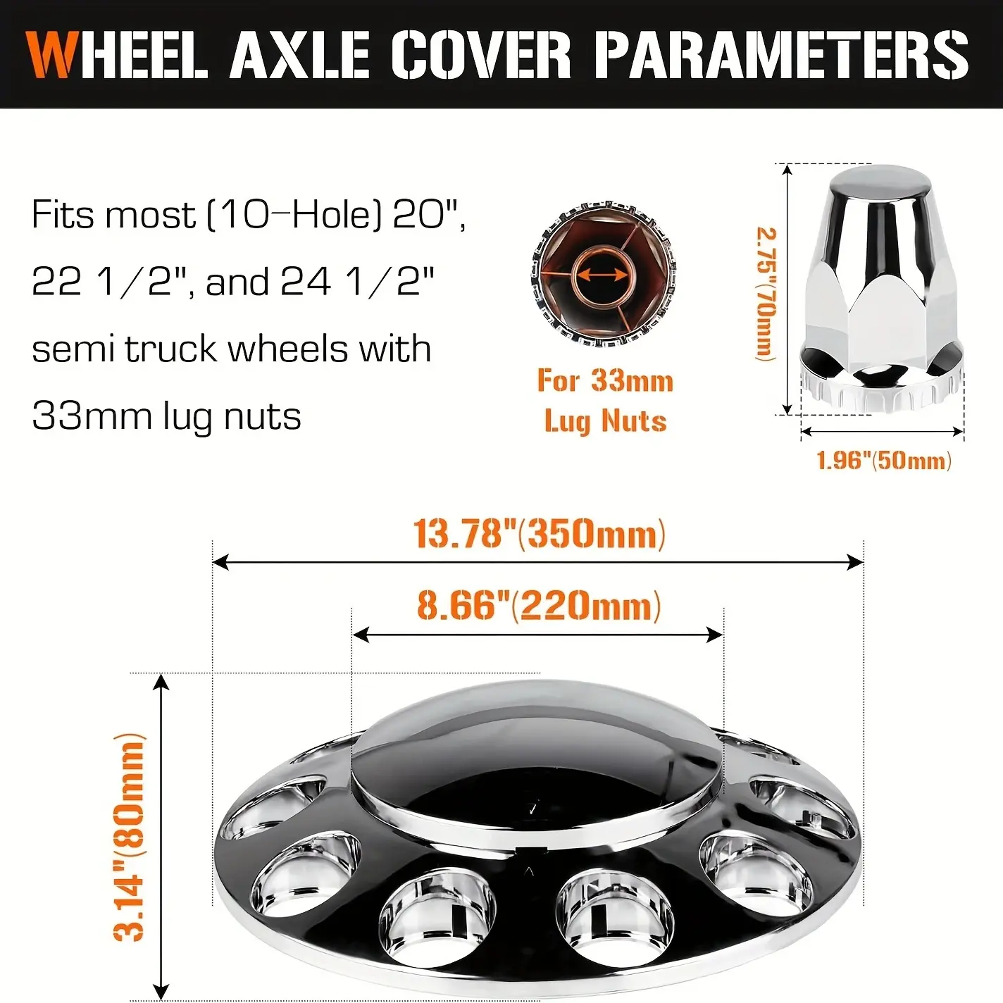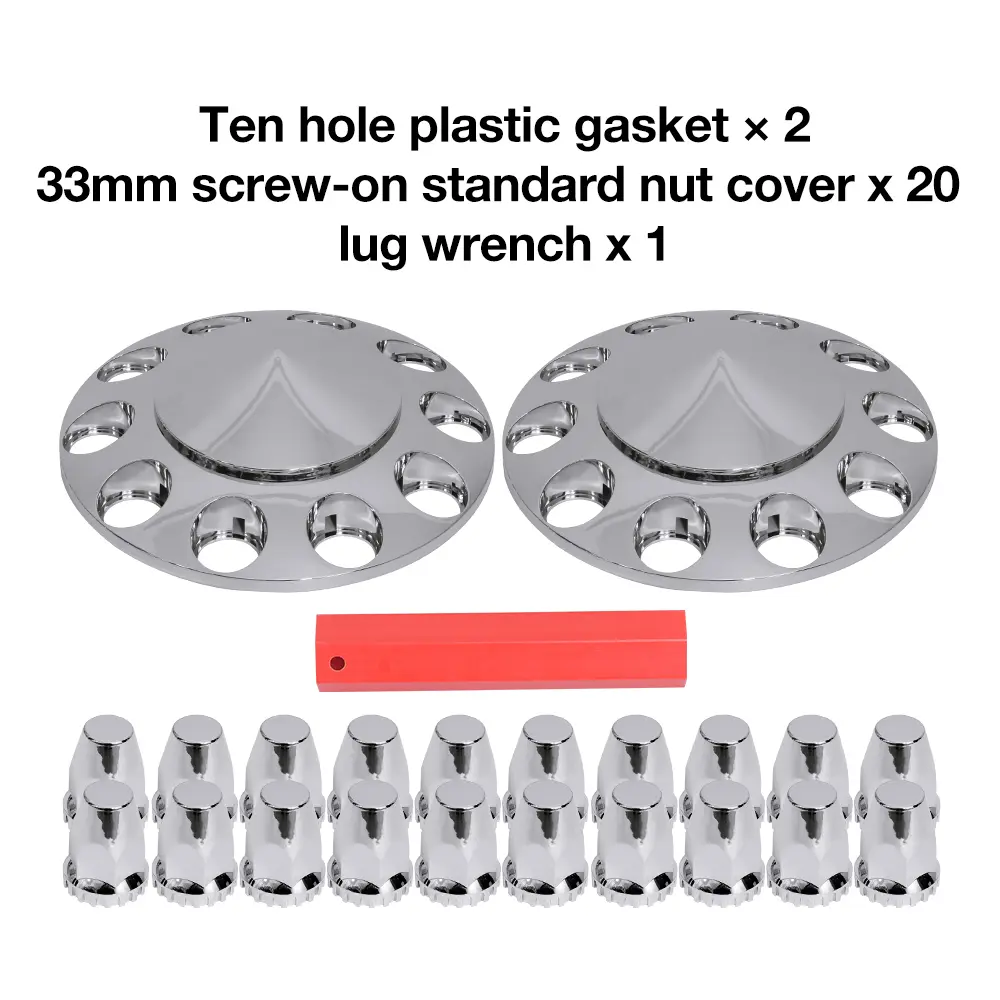 Chrome ABS Complete Axle Cover Set with Hub Caps and 33mm Screw-On Lug Nut Covers for Semi Trucks (2 Front) Car Accessories