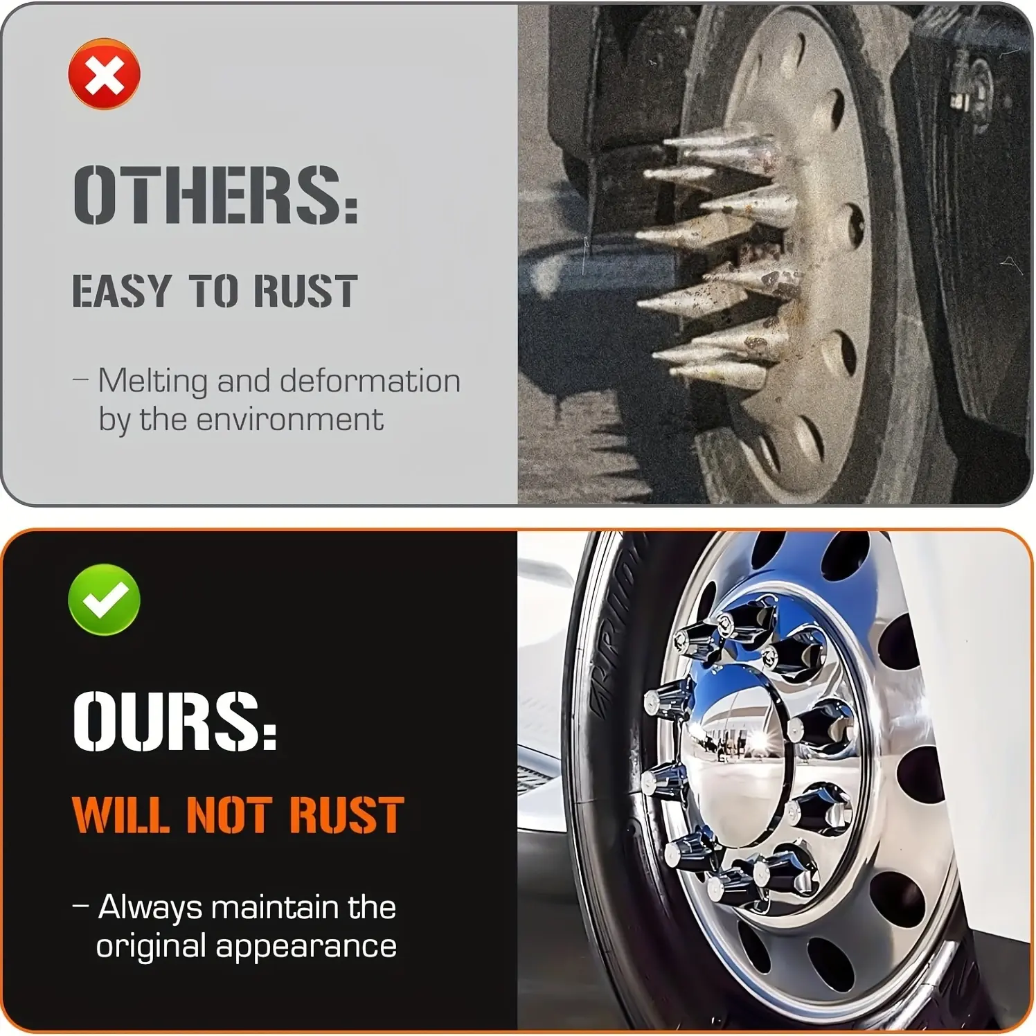 ·Compatibility: Fits most 10-hole, 20 inches, 22.5 inches, and 24.5 inches wheels with a 11.25 inches bolt circle. 📏
