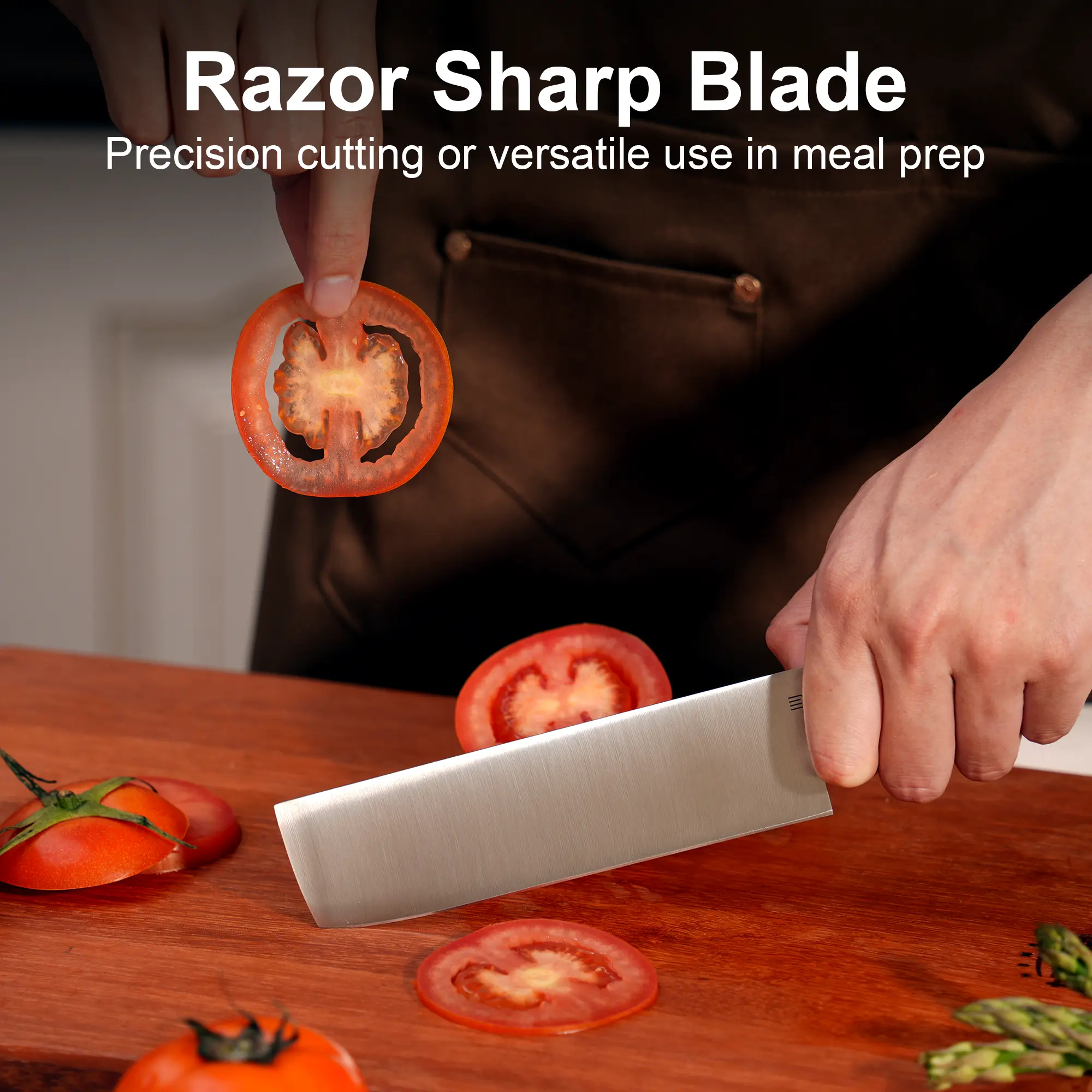 ·【Top-grade Forged Steel】- Premium forged steel for exceptional performance. Cleaver knife is crafted from AR-ARM9 steel, hardened to 59-61HRC, and hand-finished for lasting sharpness, rust resistance, and a comfortable grip.