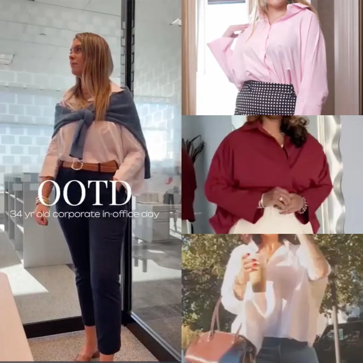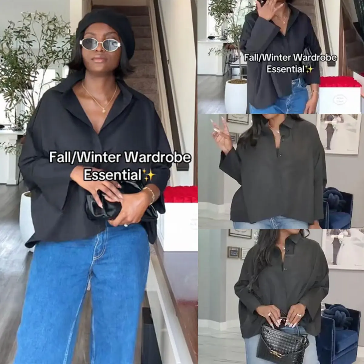 UOOZEE Women's Loose Oversized Fit Multi-Colored Lapel Shirt Tops for all seasons loose and simple Polyester oversized versatile commuting suitable for a variety of occasions Collared Longsleeves cute fall outfits going tops office outfits Chic Casual