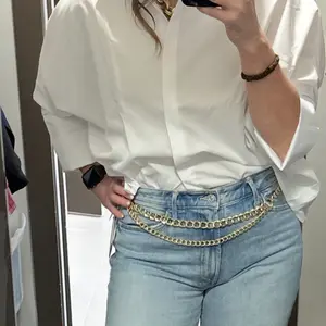 I actually love this top! Itās versatile and not the average white button down. The material is comfortable and the fit is loose but not bulky. I do not regret this purchase and want to get it in black as well.