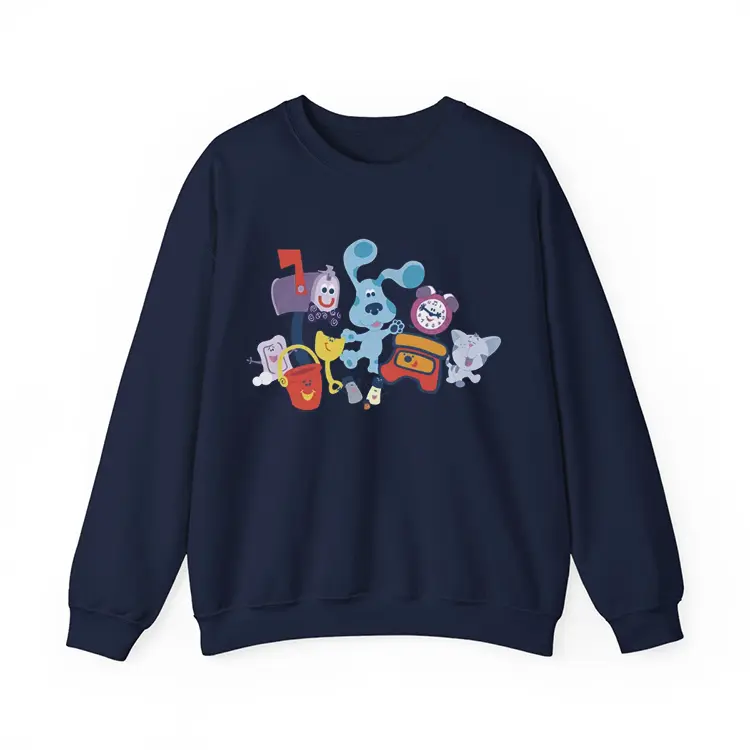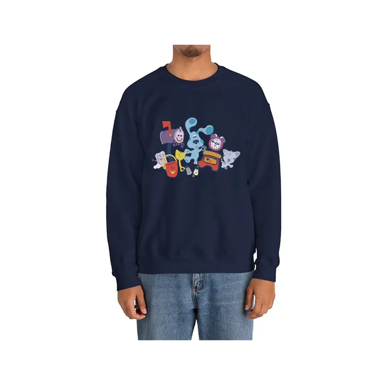 BLUE_CLUES FRIEND PARTY Adult Crewneck T-Shirt Sweatshirt Cotton Collar Fabric Unisex Man Woman Casual Menswear Top