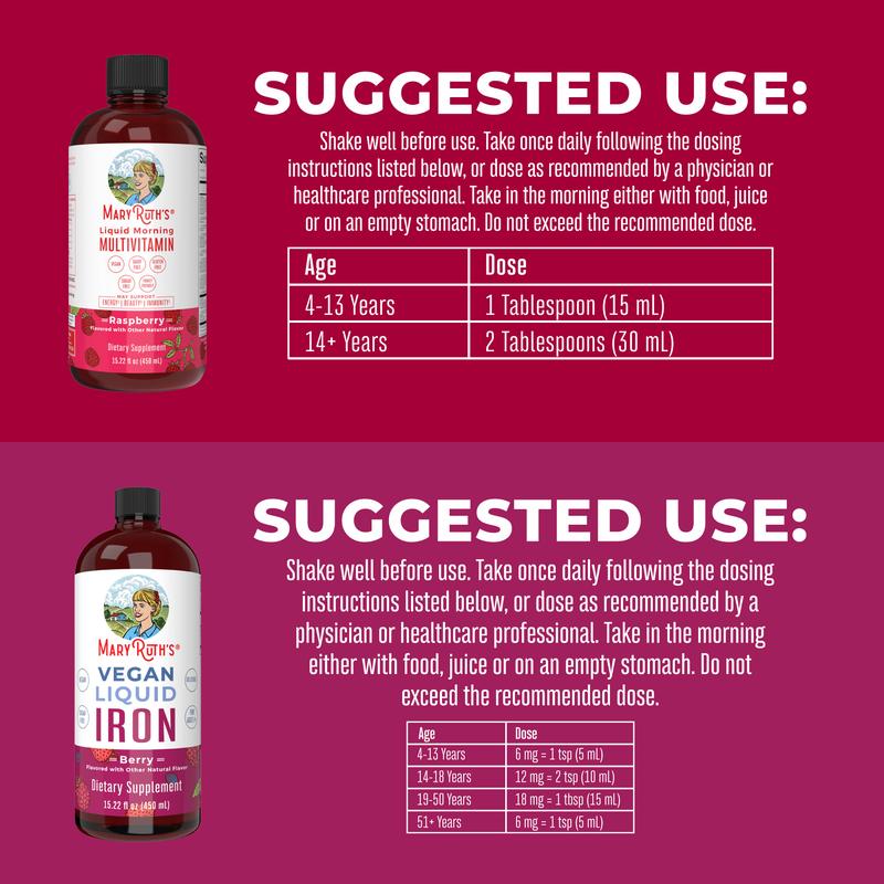 Support your daily nutrient needs to support energy, beauty & immunity as well as healthy iron levels with this bundle of our liquid multivitamin and tasty berry-flavored liquid iron!