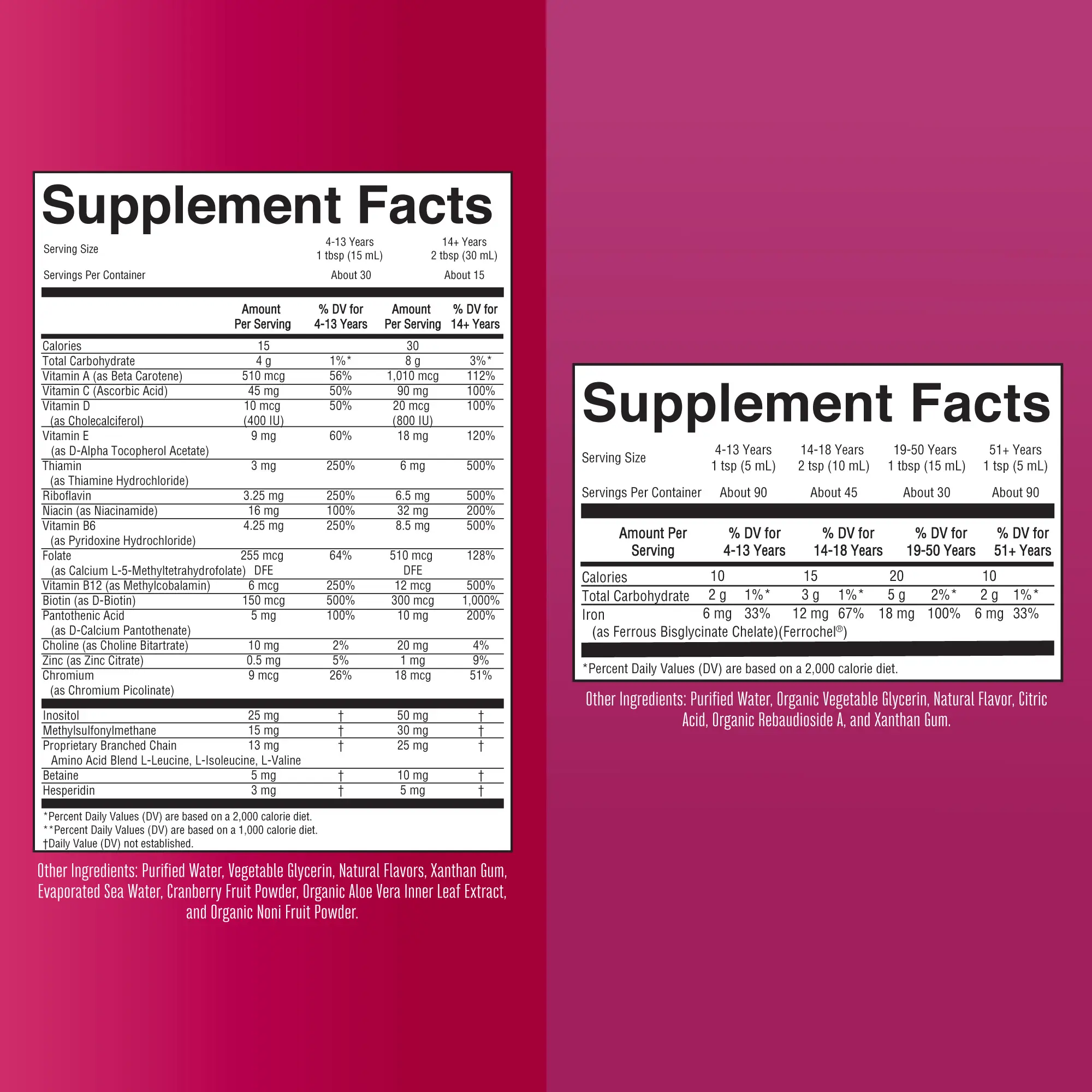 This delicious raspberry-flavored Liquid Morning Multivitamin provides essential daily vitamins, amino acids, and minerals, while our Liquid Iron supports sufficient iron intake to help ensure that you’re getting the oxygen you need.