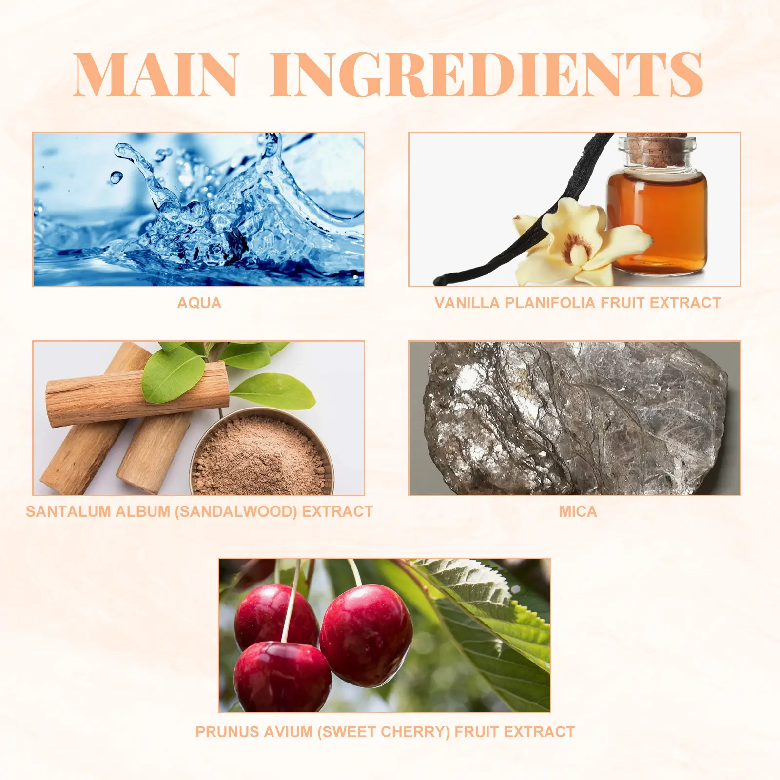 Our Soft Vanilla Shimmer Fragrance Mist contains Vanilla Planifolia Fruit Extract, Prunus Avium (Sweet Cherry) Fruit Extract, Santalum Album(Sandalwood)Extract. It can highlight your charm add elegance and confidence, make yourself stand out in social situations, attract more attention and appreciation, help create a romantic atmosphere, increase the attraction of emotional communication, make the date more memorable. Its use method is very simple: spray the perfume on the wrists, neck, behind the ears, or spray the perfume in the air and then mist, so that the perfume evenly distributed throughout the body, leaving a fragrant aroma. Using vanilla as a base, combined with the glitter effect, presents a unique aroma and visual effect, which can give off a mature and elegant fragrance, leaving a lasting impression.