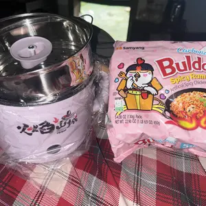I LOVE this, the color is so cute (I got light blue) and it works perfectly. It has a medium boil and a high boil that work so well! I absolutely love the lil pot! The noddles are great but very spicy if you use the full pack lol if you aren’t the biggest fan of spice I would use a little (red bag)